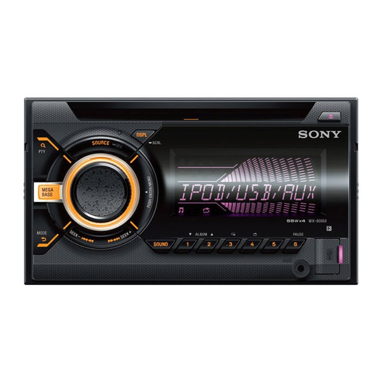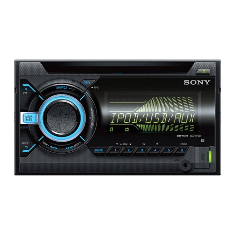 Autorádio SONY s rozmerom 2DIN, s USB a AUX vstupmi, výstupmi na externý subwoofer, s funkciami DSEE a DSO, s MEGA BASS EQ10 a výstupným výkonom 4 x 55W, nastaviteľné podsvietenie tlačidiel.