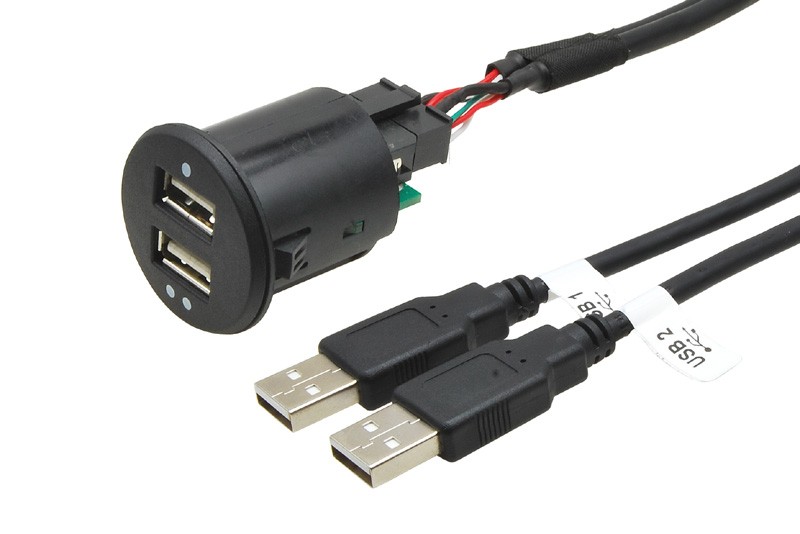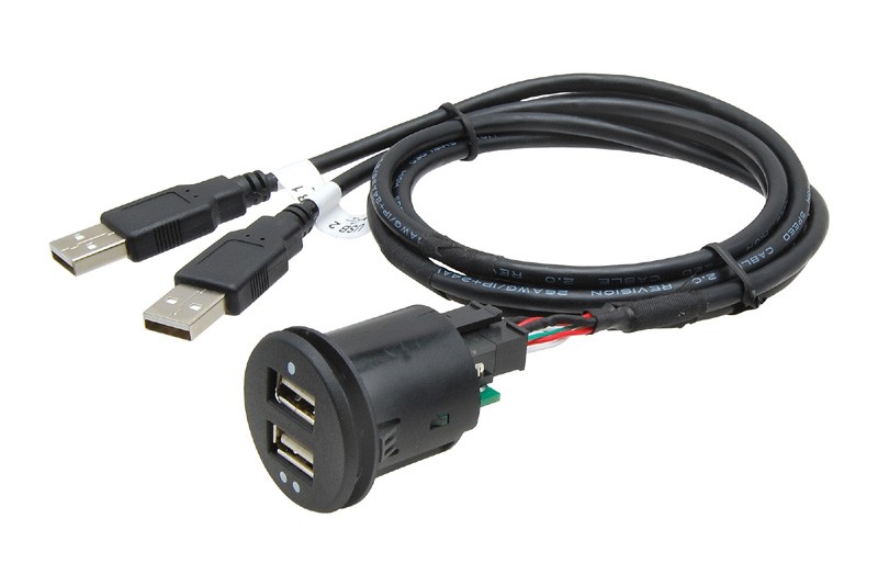 2x USB zásuvka s káblom, dĺžka 1 m
