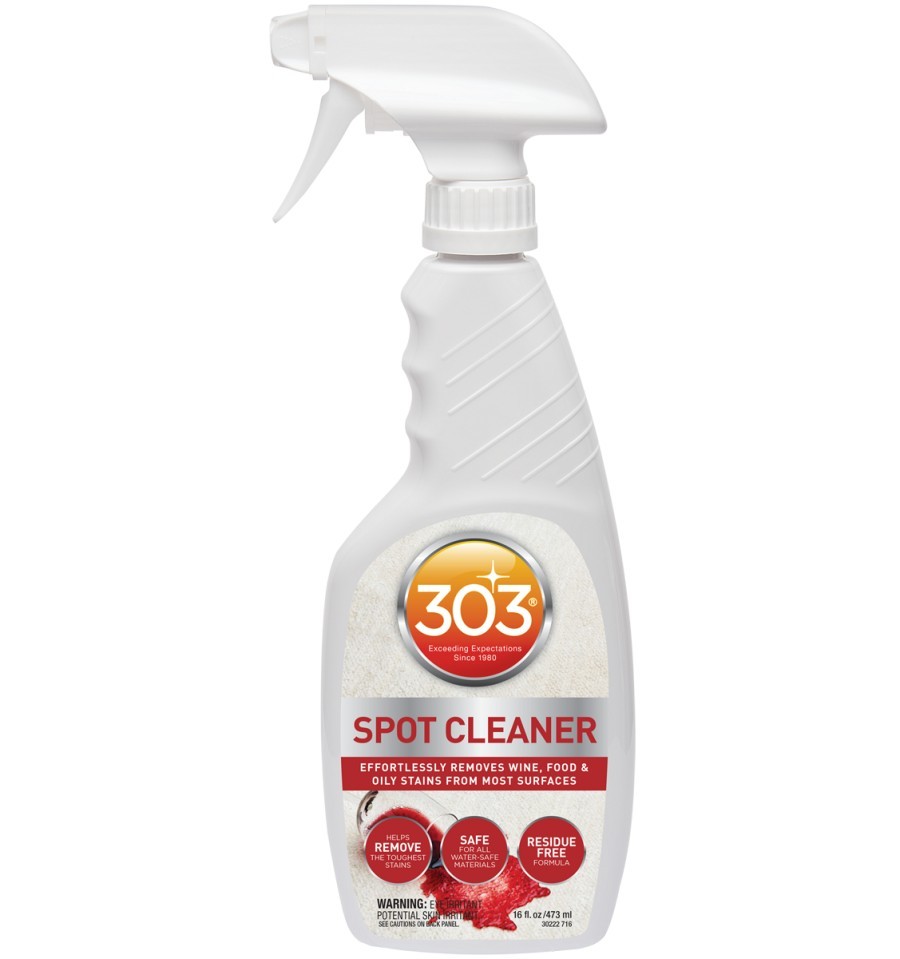 303 Cleaner & Spot Remover používa patentovaný vzorec separátora, povrchovo aktívneho činidla a zmáčadla k oddeleniu a odstráneniu nečistôt, mastnoty a ďalších nečistôt z povrchu. Výrobok je úplne bezpečný a môže byť použitý na všetkých tkaninách a textilných výrobkoch, ktoré sú určené pre čistenie vodou. Účinok čističa sa zvyšuje s použitím horúcej vody.Návod na použitie čističa 303 Cleaner & Spot Remover 950 ml