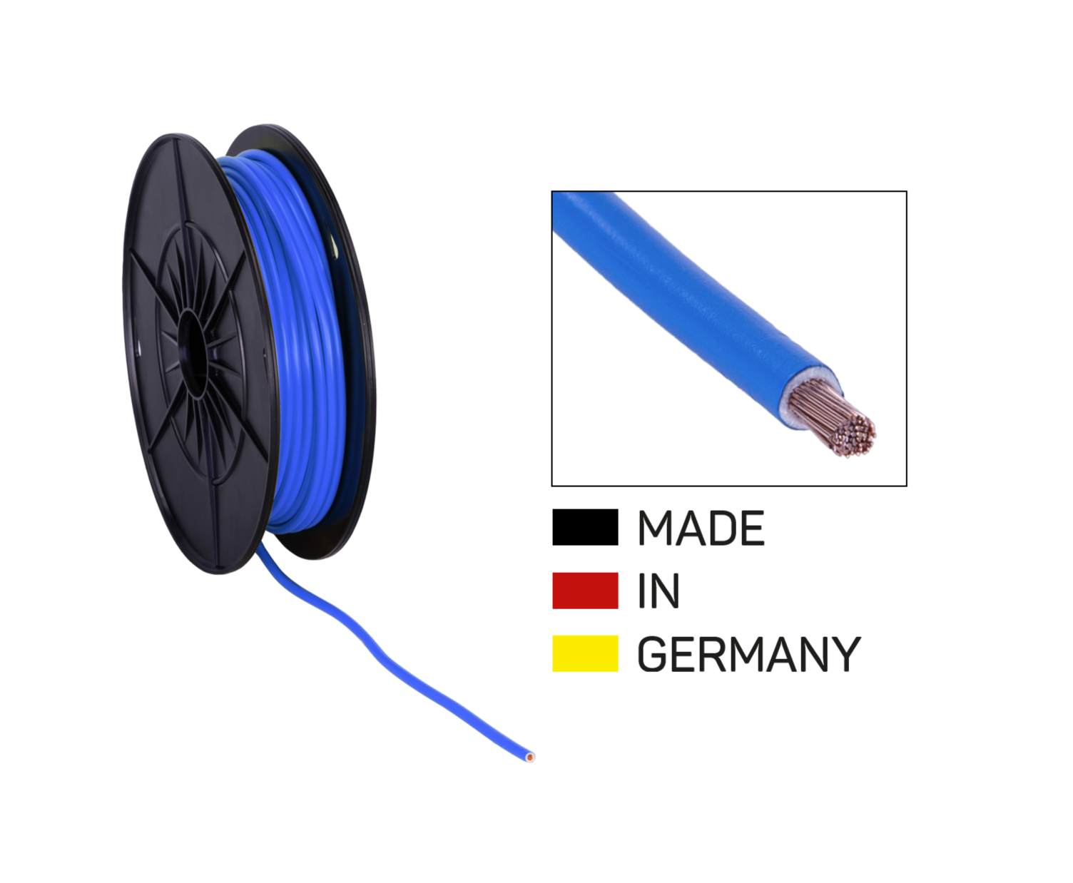 medený napájací kábel, prierez 4 mm², modrá izolácia