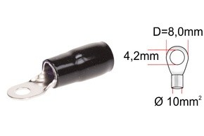 káblová oko strieborné pre kábel 10mm2 čierna izolácie, 4,2 mm
