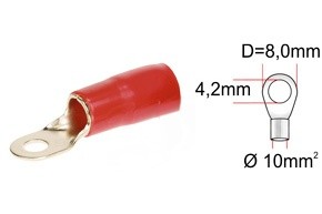 káblová oko zlaté pre kábel 10mm2 červená izolácie, 4,2 mm