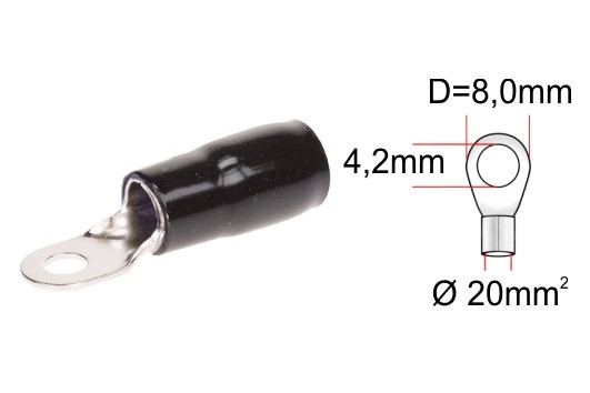 káblové oko strieborné pre kábel 20 mm², čierna izolácie, 4,2 mm otvor
