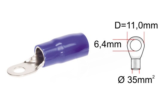 káblové oko strieborné pre kábel 35 mm², modrá izolácie, 6,4 mm otvor