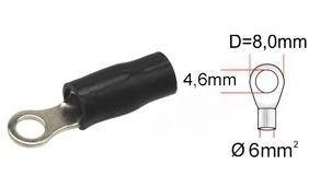 káblové oko strieborné pre kábel 6,0 mm², čierna izolácie, 4,6 mm otvor