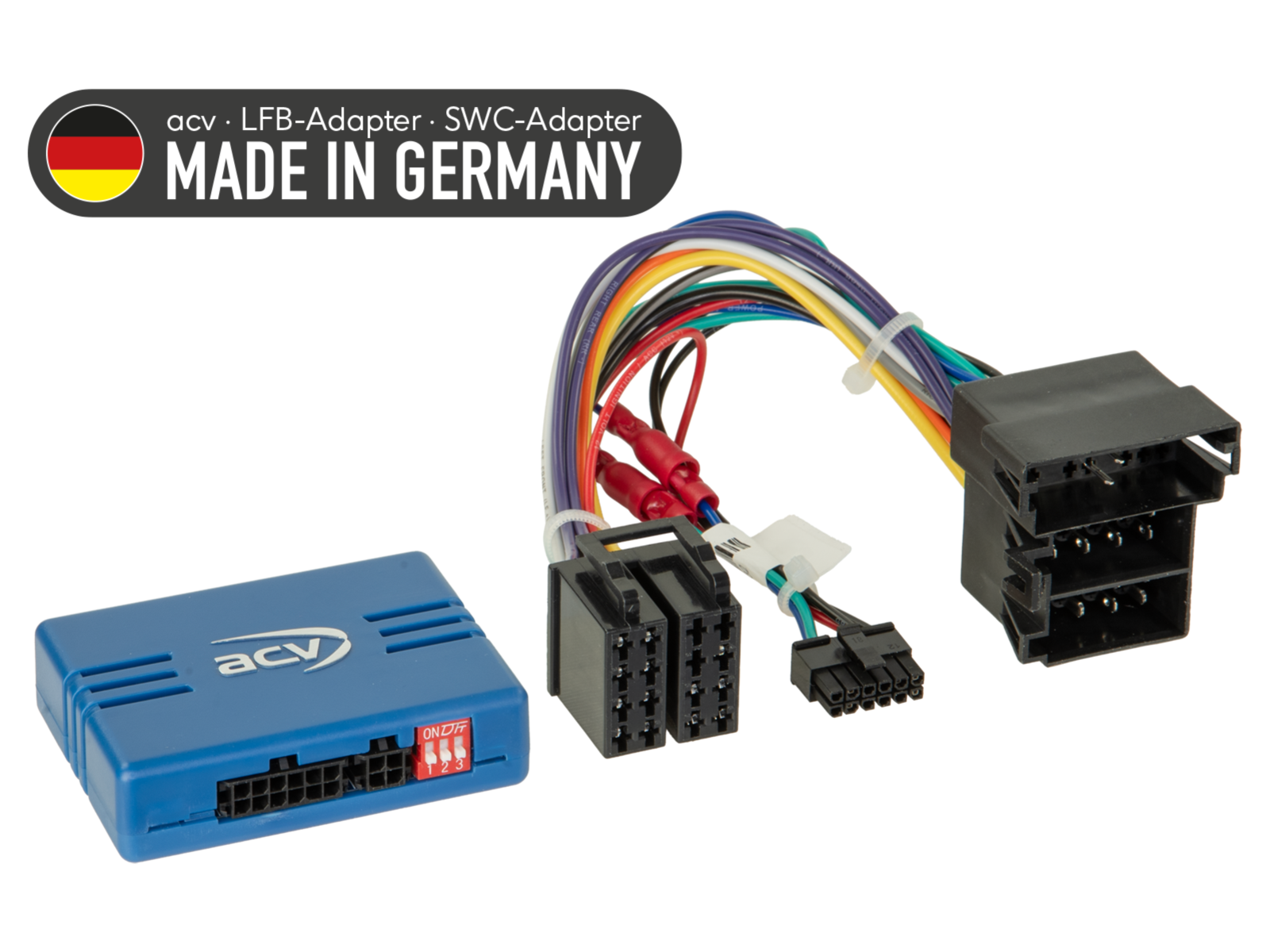 Zachovajte pôvodné funkcie ovládania autorádia z volantu pri výmene originálneho rádia za aftermarketovú jednotku. V závislosti od výbavy vozidla, rozsahu funkcií a softvéru novoinštalovaného autorádia môže dôjsť k obmedzeniu alebo nahradeniu niektorých funkcií inými. Porovnajte zobrazené konektory káblov so spojmi vo vašom vozidle a uistite sa, že zodpovedajú technicky aj vizuálne. Skontrolujte, či bolo pôvodne nainštalované niektoré z uvedených OEM autorádií. Pred finálnou montážou overte funkčnosť vozidla, nastavenie systému a správne fungovanie ovládania z volantu (SWC).