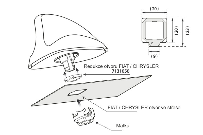- Určené pre automobily s anténou umiestnenou v zadnej časti strechy s otvorom 20 x 20 mm.