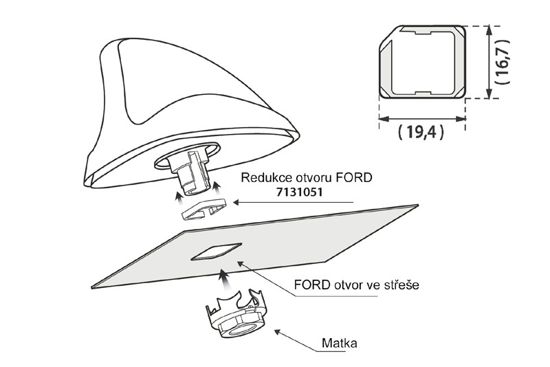 - Určené pre automobily s anténou umiestnenou v zadnej časti strechy s otvorom 19,4 x 16,7 mm.