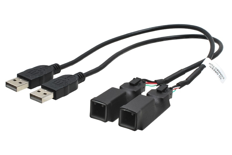 - Adaptér na pripojenie OEM (originálneho) 2x USB konektora k aftermarket (dodatočne) inštalovanému autorádiu.
