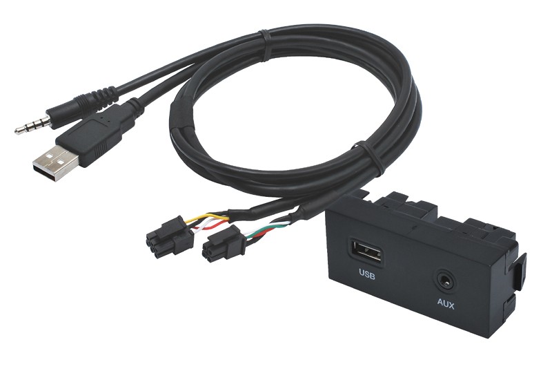 - Adaptér na pripojenie USB a AUX signálu nahradzuje pôvodný konektor v automobile pri použití aftermarket (dodatočne) inštalovaného autorádia.