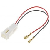 Adaptér sa na jednej strane skladá z konektora, na opačnej strane sú klasické fastony (úzky + široký). Dĺžka kábla medzi oboma koncovkami je +- 13 cm. Cena za 2 ks.