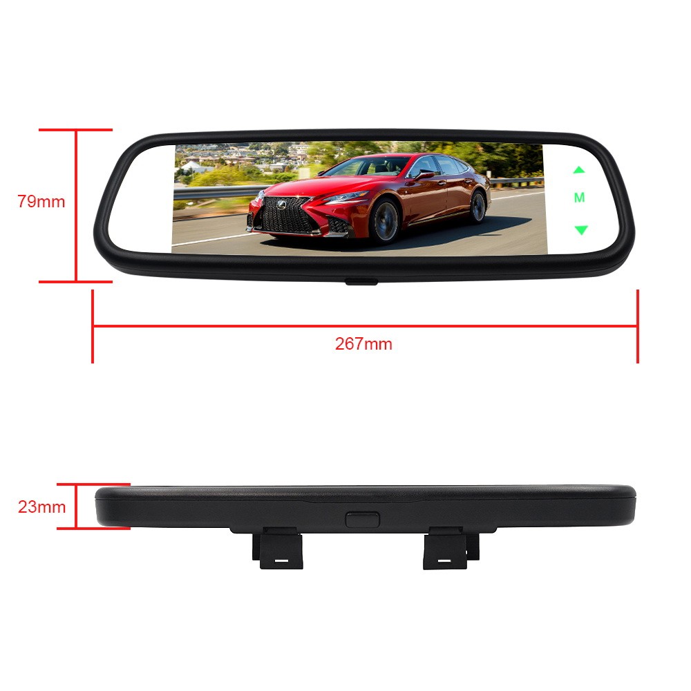 AHD LCD monitor 7,36" v elegantnom prevedení určený na upevnenie na spätné zrkadlo. Monitor je vybavený úchytmi na pôvodné spätné zrkadlo. Zároveň nahrádza funkciu spätného zrkadla. K monitoru je možné pripojiť ľubovoľný externý zdroj kompozitného video signálu v AHD + kamery v AHD.Technické parametre LCD monitora v zrkadle