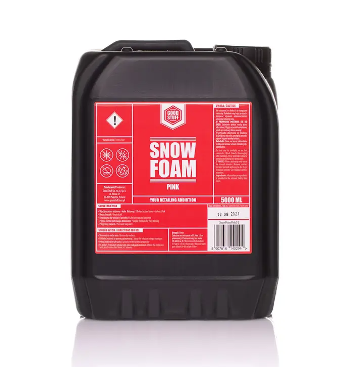 Good Stuff Snow Foam je koncentrovaná aktívna pena. Hustá a stabilná pena v kombinácii s neutrálnym pH je bezpečná pre akýkoľvek čistený povrch. Je dostupná v štyroch farebných variantoch: biela, mätová, ružová a oranžová. Pre najlepší užívateľský zážitok používajte s vysokotlakovou penovou pištoľou alebo ručným rozprašovačom. Je obohatená o príjemnú vôňu.