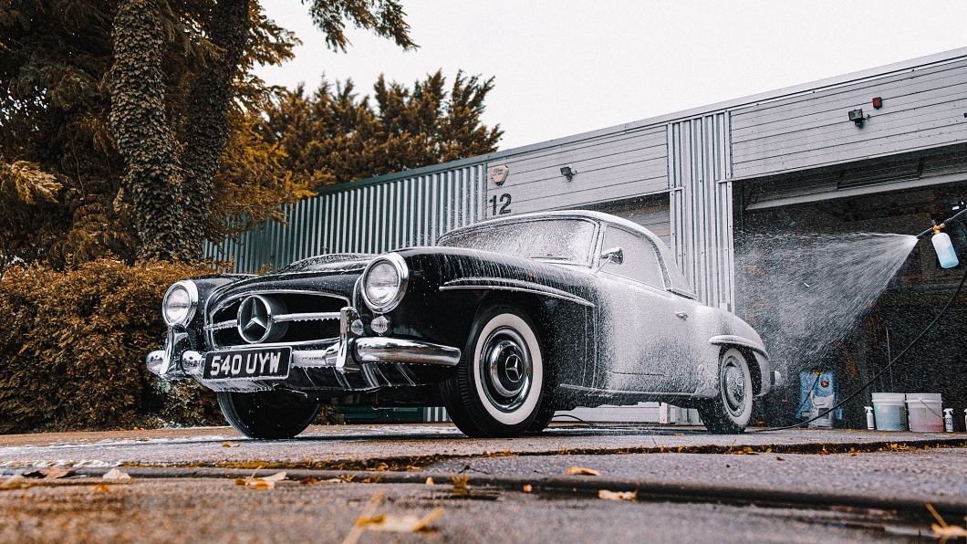 - Nastriekajte na lak vozidla a nechajte pár minút pôsobiť.