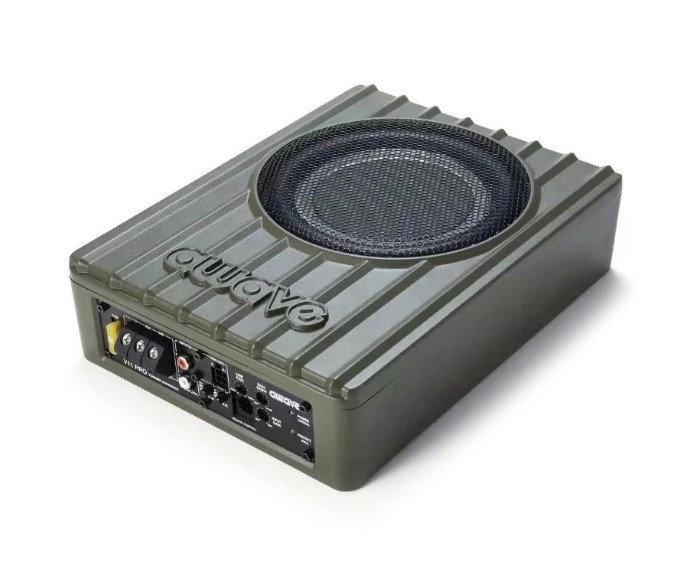 Ak je inštalačný priestor vo vozidle obmedzený a existujúci automobilový hi-fi systém nutne potrebuje „nakopnutie“ v nízkofrekvenčnom rozsahu bez veľkého úsilia, nové aktívne subwoofery Awave V11 Pro sú tou správnou voľbou. Robustný menič s pevnou hliníkovou membránou priemeru 6,5" a tepelne odolnou kmitacou cievkou ľahko premieňa výkon integrovaného digitálneho zosilňovača na pôsobivé basy. Hlavnými prednosťami subwoofera sú však veľmi kompaktné rozmery, vďaka ktorým sa subwoofer zmestí prakticky kamkoľvek. Subwoofer zaujme aj zaujímavým dizajnom v trendovej zelenej farbe, poctivým spracovaním a odolným hliníkovým šasi. Už pri zdvihnutí tohto subwoofera je jasné, že ide o poriadny kus železa. Intenzitu nízkych frekvencií je možné regulovať priamo na šasi alebo na diaľkovom ovládaní, ktoré nájdete v balení. Nastaviť možno tiež Bass Boost, Low Pass filter a Phase Shift. Samozrejmosťou sú vysokoúrovňové vstupy aj nízkoúrovňové vstupy (RCA). Ideálne riešenie pre všetkých, ktorí si chcú podporiť basovú zložku ozvučenia a neprísť prakticky o žiadne miesto v interiéri vozidla.