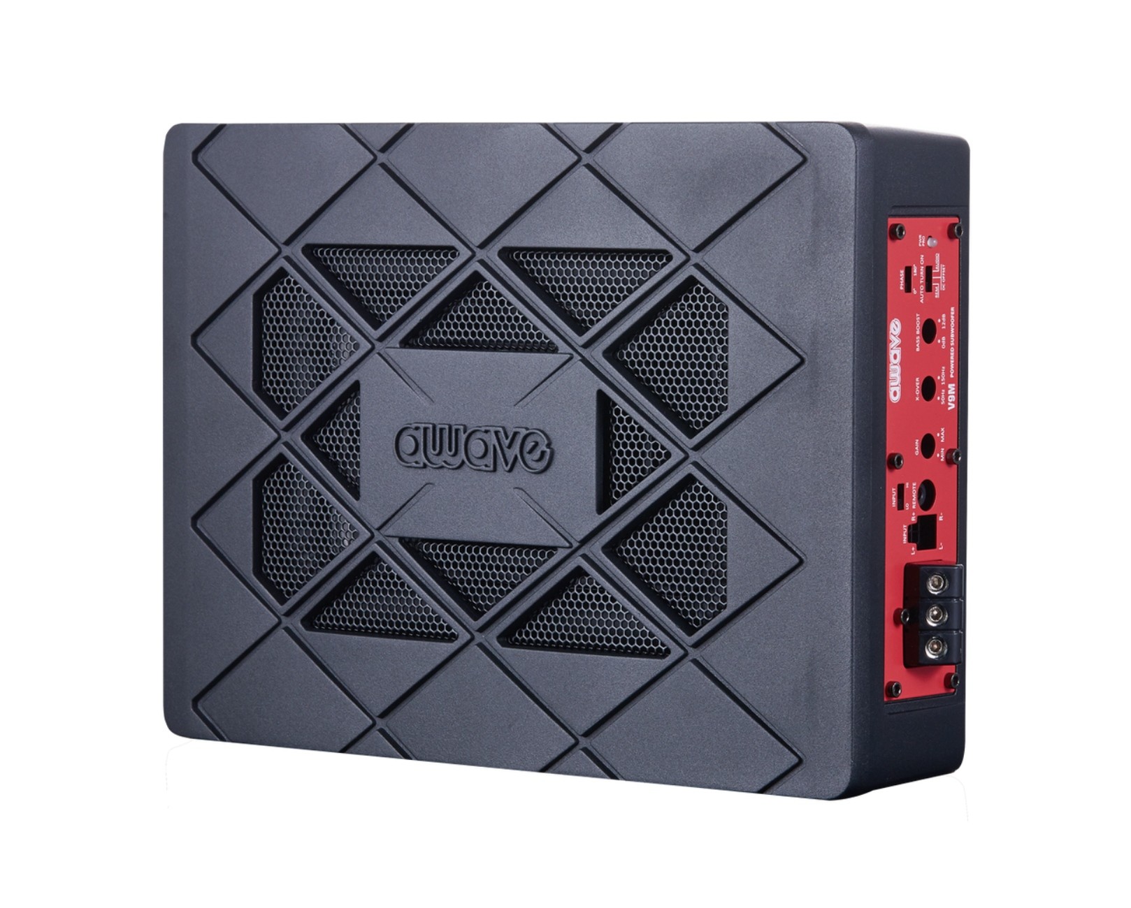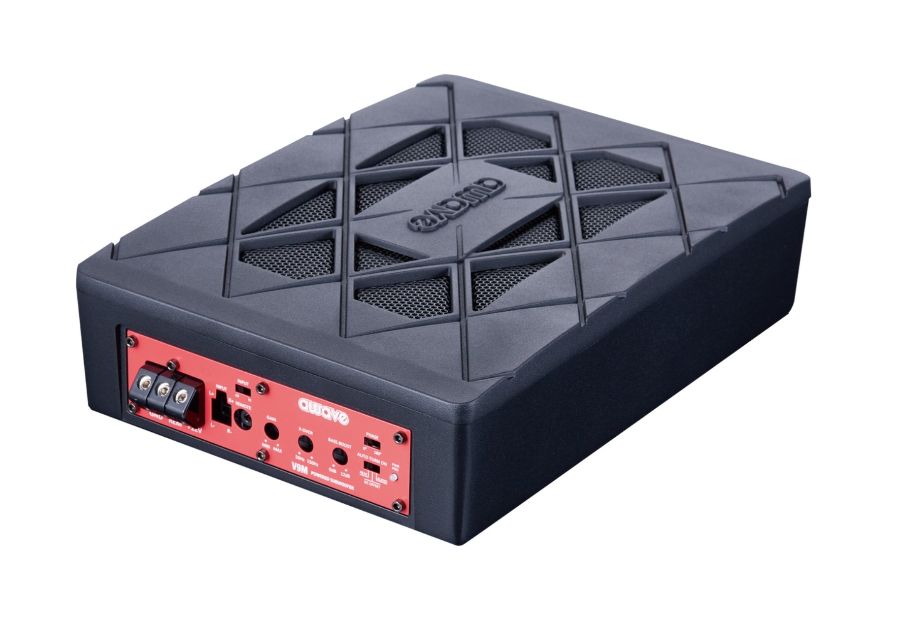 Ak je inštalačný priestor vo vozidle obmedzený a existujúci automobilový hifi systém nutne potrebuje „nakopnúť“ v nízkofrekvenčnom rozsahu bez veľkého úsilia, sú nové aktívne subwoofery Awave V9M tou správnou voľbou. Robustný menič s pevnou hliníkovou membránou o netradičnom rozmere 6 x 8" a tepelne odolnou kmitacou cievkou ľahko premieňa výkon integrovaného digitálneho zosilňovača na pôsobivé basy. Hlavné prednosti subwoofera sú však veľmi kompaktné rozmery, vďaka ktorým sa subwoofer zmestí prakticky kamkoľvek. Subwoofer zaujme aj zaujímavým dizajnom, poctivým spracovaním a odolným hliníkovým šasi. Už pri potiahnutí tohto subwoofera zistíte, že ide o poriadny kus železa. Intenzitu nízkych frekvencií je možné regulovať priamo na šasi alebo na diaľkovom ovládači, ktorý nájdete v balení. Nastaviť možno aj Bass Boost, Low Pass filter a Phase Shift. Samozrejmosťou sú vysokoúrovňové aj nízkoúrovňové vstupy (RCA). Ideálne riešenie pre všetkých, ktorí si chcú podporiť basovú zložku ozvučenia a neprísť prakticky o žiadne miesto v interiéri vozidla.