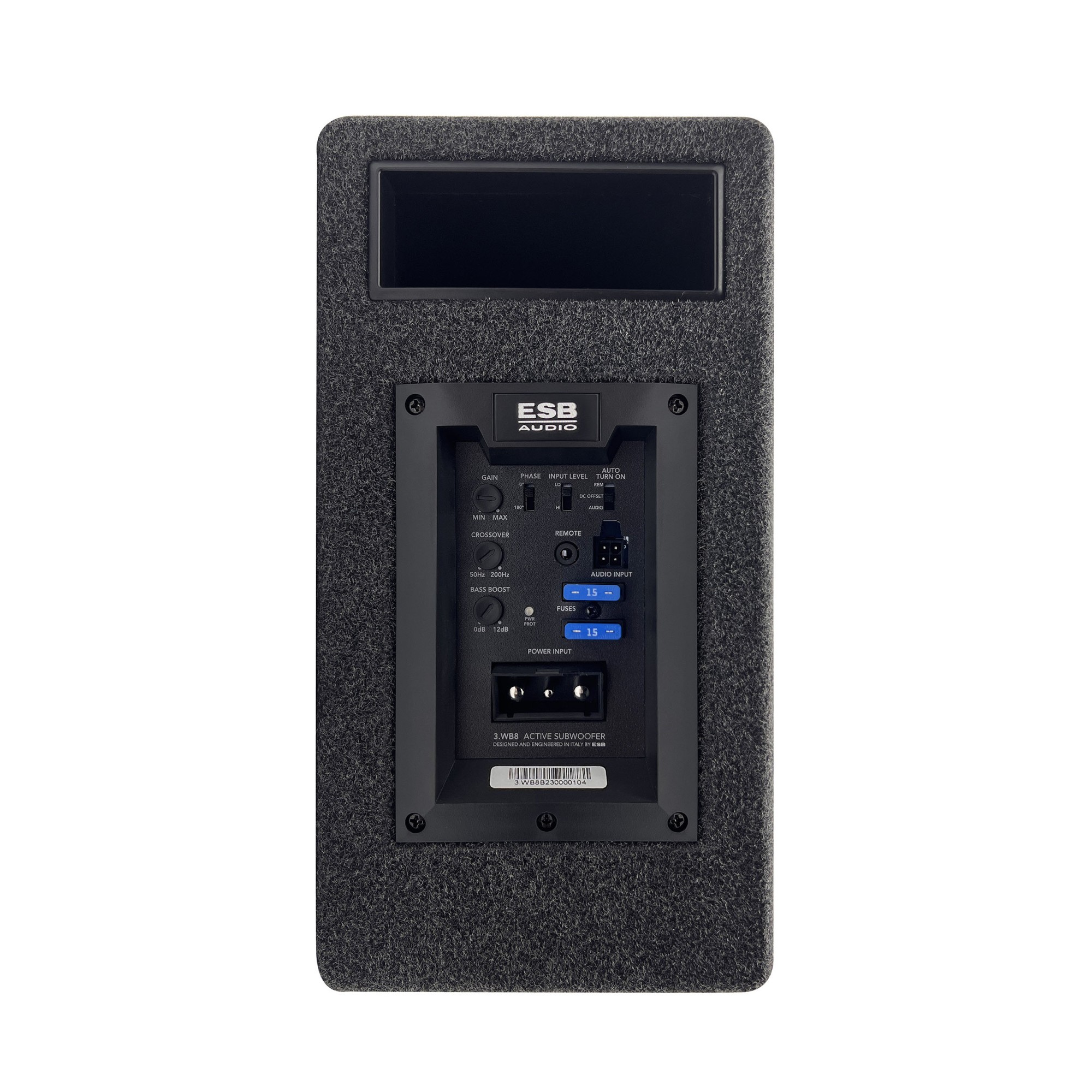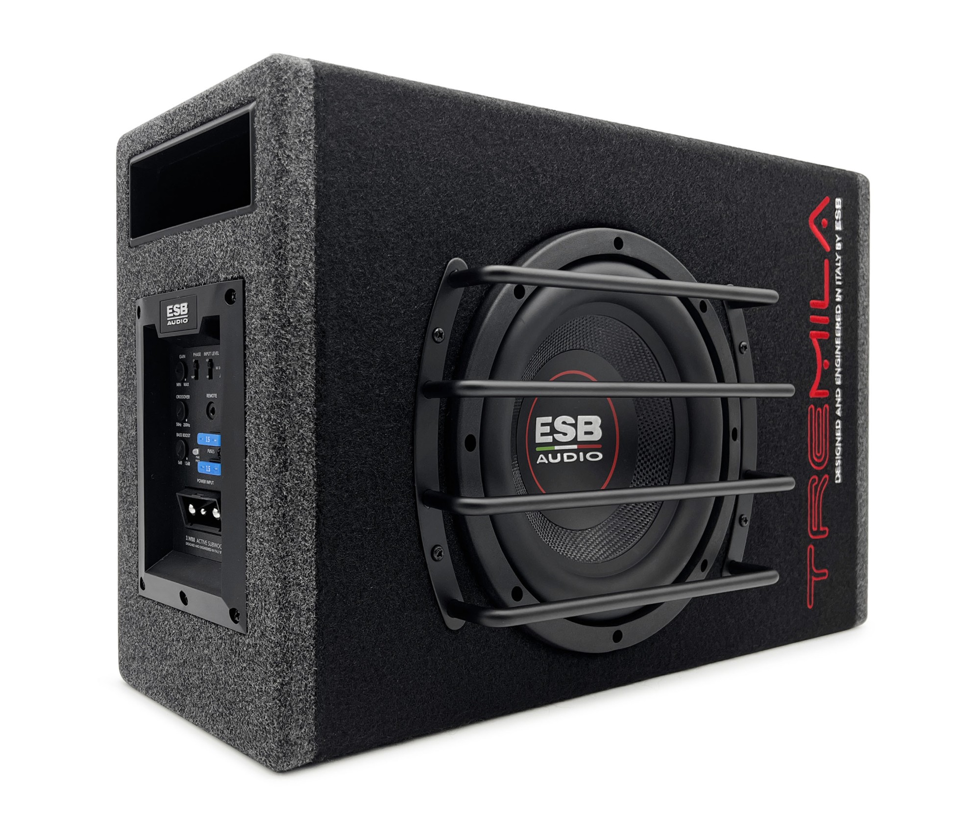 Modelový rad 3000 (Tremila) od ESB bol vyvinutý a zostavený s veľkým nasadením vo výskume materiálov a technických riešení najvyššej úrovne. V ponuke radu Tremila nájdete široké portfólio produktov, ktoré sa vyznačujú veľmi kvalitným zvukom, príkladným spracovaním a použitím najmodernejších technológií. A taktiež u subwooferov radu Tremila sa môžete spoľahnúť na vynikajúcu zvukovú kvalitu a nespočet inovácií. Aktívny subwoofer tohto radu disponuje 8" meničom s papierovou membránou vystuženou karbónovými vláknami, robustným feritovým magnetom a najmä integrovaným digitálnym zosilňovačom s výkonom 300 W RMS. Kompaktná bassreflexová ozvučnica s hrúbkou iba 15 cm zaisťuje mohutné basy so zodpovedajúcou kvalitou ESB Audio. Súčasťou ozvučnice je ovládací panel s plug & play konektorom pre ľahké odpojenie subwoofera. Na paneli nájdete aj ovládanie gainu, dolné pásmové priepusty, bass boost a výbavu dopĺňa nastavenie fázy. Samozrejmosťou je automatické zapínanie a v balení nájdete aj diaľkové ovládanie.
