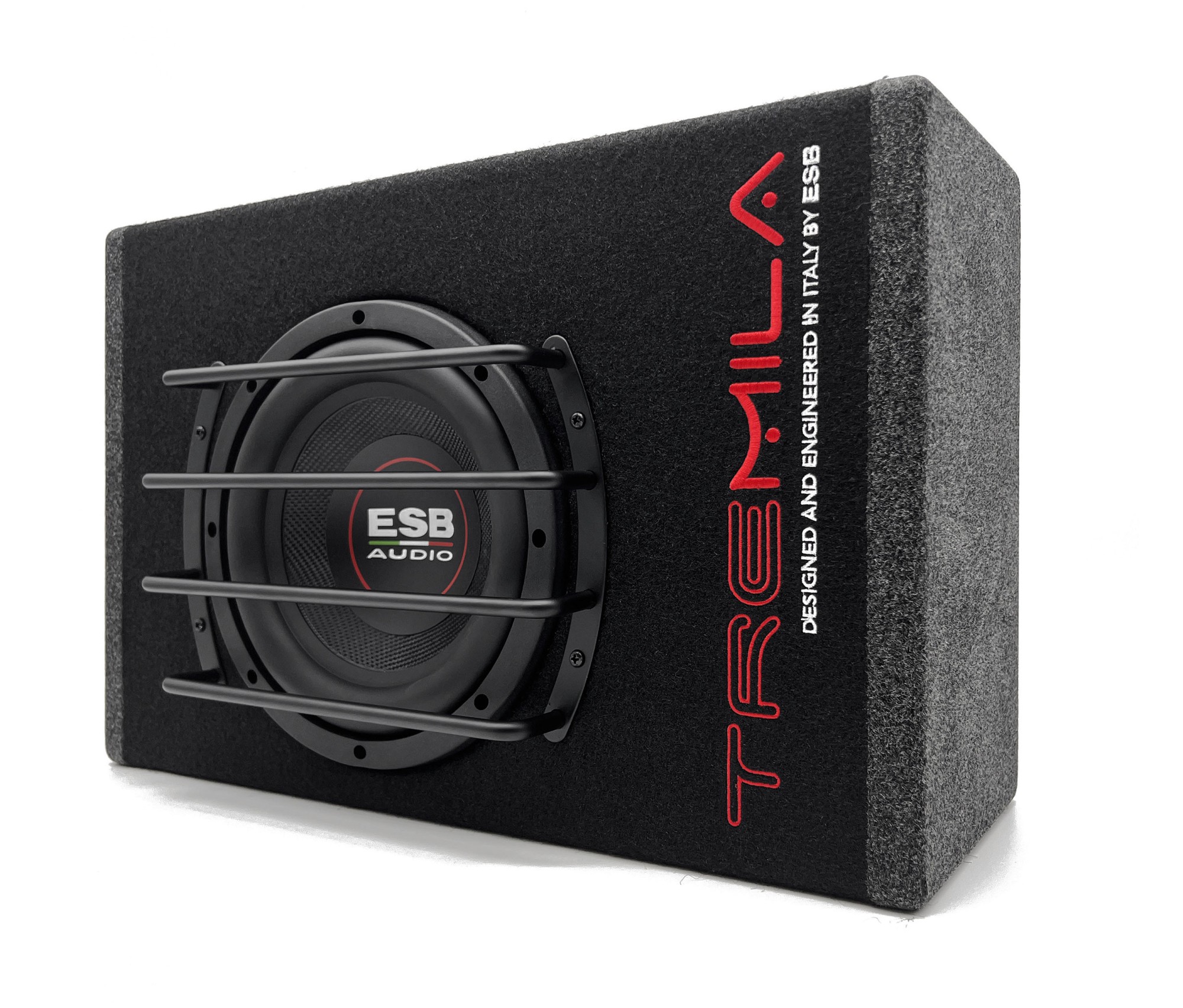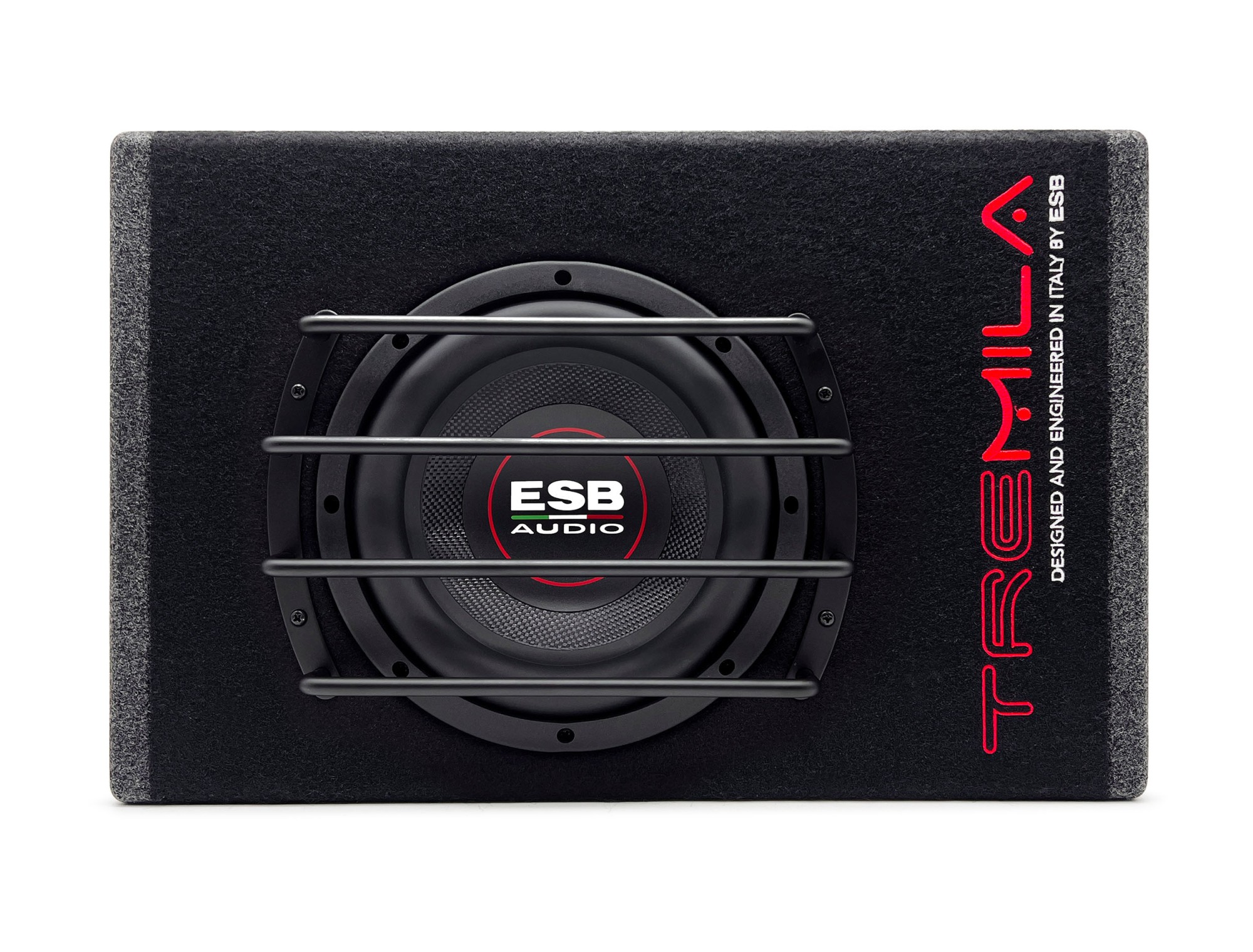 - Bassreflexová MDF ozvučnica potiahnutá čiernym kobercom s logom série Tremila.