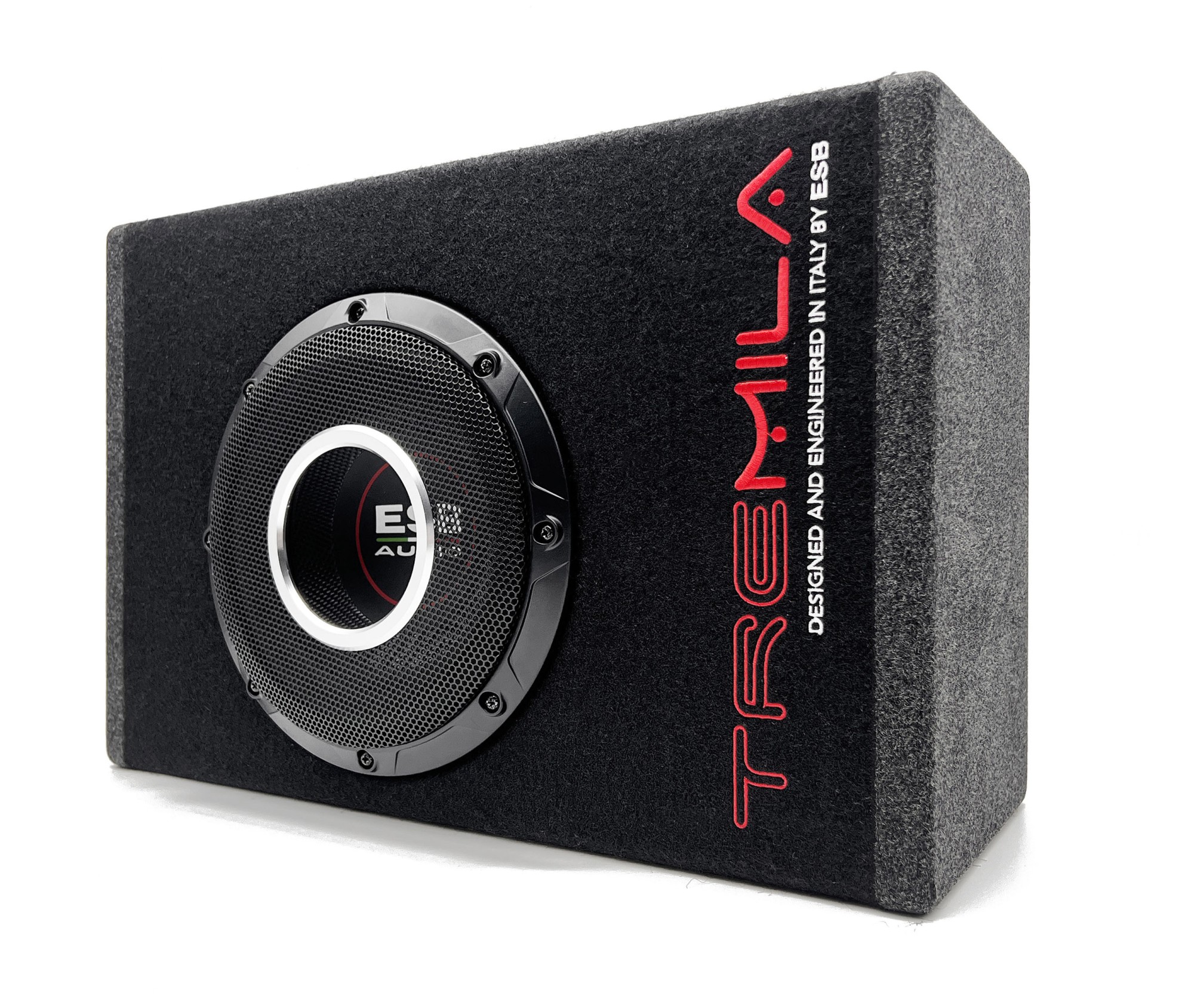 - Bassreflexová MDF ozvučnica potiahnutá čiernym kobercom s logom série Tremila.