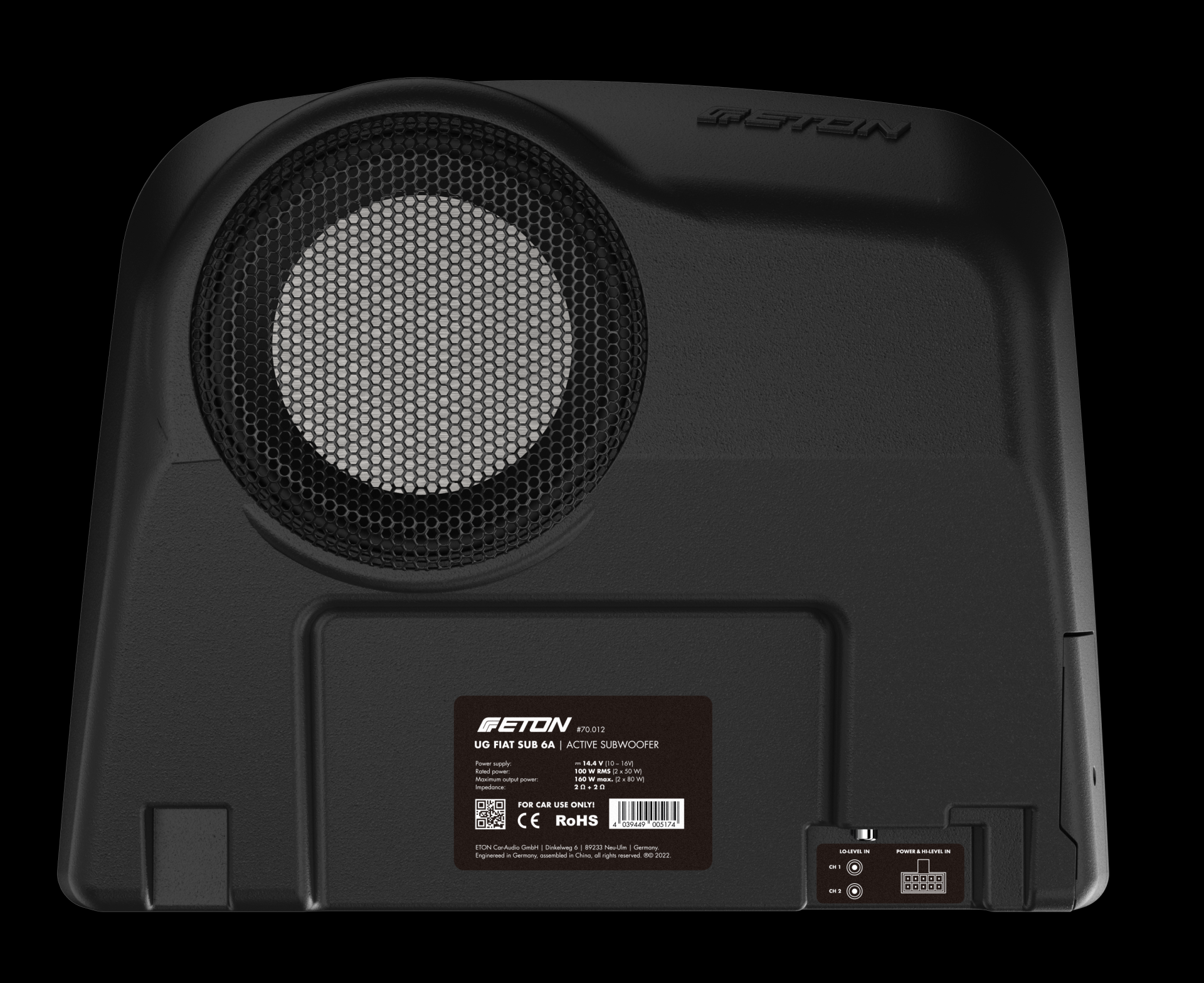 Aktívny subwoofer pre obytné vozidlá, kempingové a úžitkové vozidlá: Plug & Play UG FIAT SUB 6A je kompatibilný s vozidlami Fiat Ducato III (rad 7 + 8), Peugeot Boxer II, Citroen Jumper II, Dodge Ram ProMaster a Iveco Daily (VI + VII ). Aktívny basový box sa ľahko montuje a perfektne sa zmestí pod stredovú konzolu vo vozidlách s držiakmi nápojov (bez indukčnej nabíjacej kolísky). Aktívny subwoofer má ponovom vyvinutý patentovaný kryt z tlakovo liateho hliníka. Špeciálne pevné hliníkové držiaky umožňujú jednoduchú montáž a demontáž basového boxu. 15 cm / 6“ woofer vo vnútri basového boxu je efektívne poháňaný integrovaným zosilňovačom s výkonom 160 W: dostatočný výkon pre bohaté a výrazné basy – a to aj vo väčších vozidlách. Basový reproduktor je namontovaný podľa princípu downfire, tj s reproduktorom smerujúcim nadol, aby bolo umožnené optimálne a rovnomerné rozloženie basových vĺn. Aktívny basový reproduktor je vybavený integrovaným nízkofrekvenčným filtrom 50 – 100 Hz a vstupom cinch (nízkoúrovňový vstup). Pre pripojenie k továrenským rádiám bez výstupu REM je UG FIAT SUB 6A vybavený vysokoúrovňovým vstupom s funkciou automatického zapnutia (rozpoznania SIG).