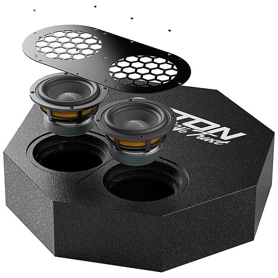 Jeden z najsilnejších aktívnych subwooferov vo svojej triede, ktorého ozvučnica je vyrobená z masívnej MDF dosky so špeciálnou čiernou povrchovou úpravou a s logom Eton. 2 x 13 cm subwoofery sú napájané zosilňovačom s výkonom 300 W RMS. Uzavretá koncepcia ozvučnice ponúka precízny a zároveň výkonný bas. Súčasťou balenia je aj potrebné príslušenstvo na montáž namiesto rezervného kolesa, kam ho možno vo väčšine prípadov namontovať.