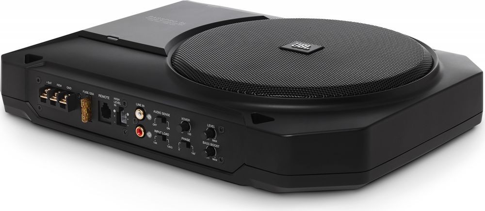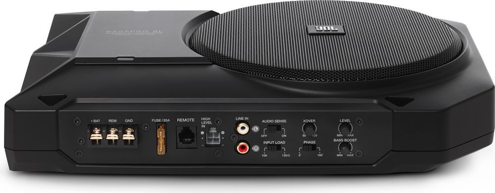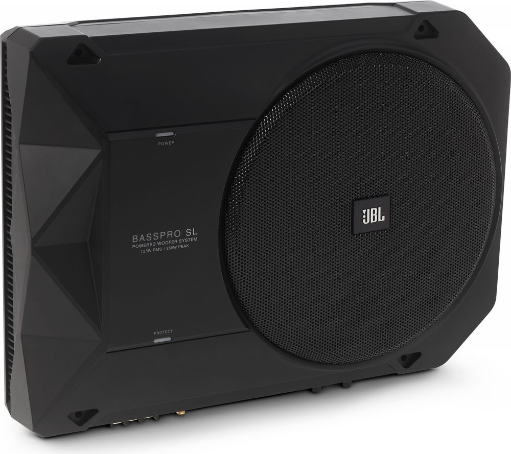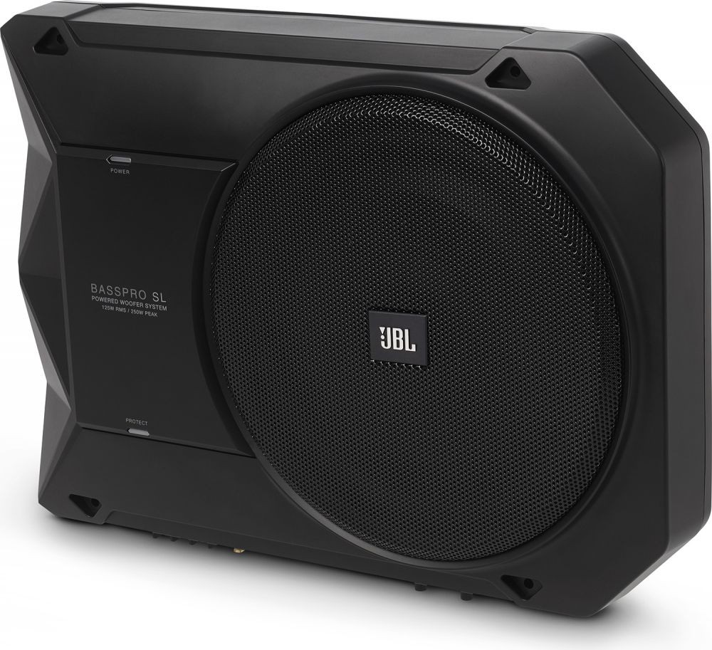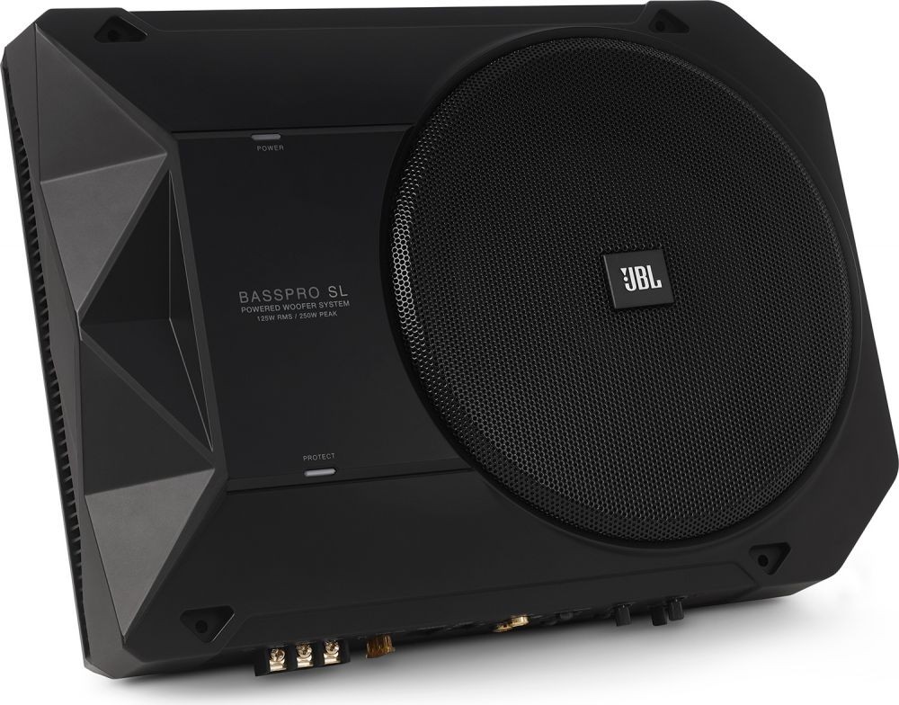 JBL BassPro SL je výkonný aktívny subwoofer, ktorý sa bez akýchkoľvek problémov vojde pod predné sedadlo väčšiny vozidiel a každému audio systému parádne pridá na basoch. Vďaka možnosti nastavenia elektronickej výhybky a flexibilného ekvalizéra si môžete BassPro SL prispôsobiť priamo na váš systém. Energeticky úsporný digitálny zosilňovač ponúka dostatočný výkon pre prevádzku subwoofera, navyše sa ani pri vysokých nárokoch neprehreje. JBL BassPro SL ponúka skvelé výstupné basy a nezaberie príliš miesta.