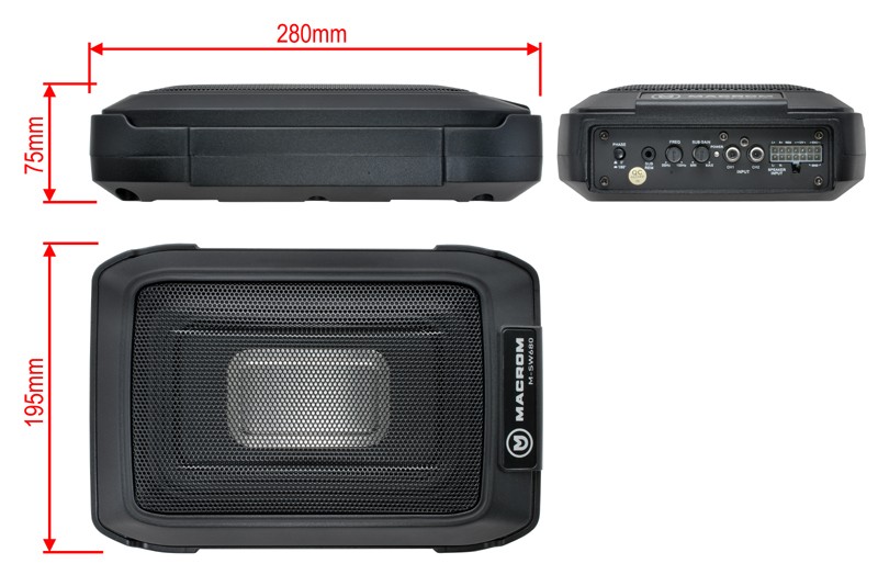 | Rozmery aktívneho subwoofera | 280 x 195 x 77 mm |