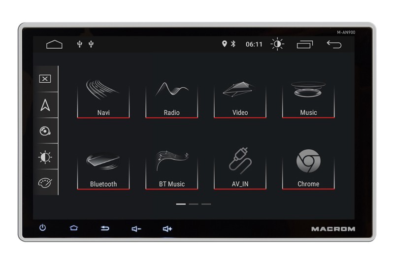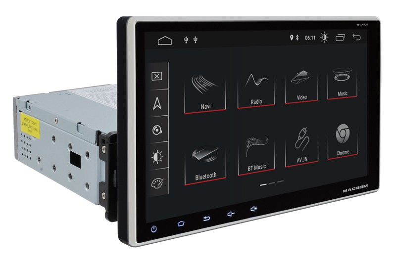Macrom M-AN900 je multimediálna jednotka s operačným systémom Android Oreo 8.1. 1DIN veľkosť a 9" kapacitný displej vo forme tabletu, umožňuje inštaláciu do radu automobilov, kam doposiaľ nebolo možné inštalovať jednotku s touto veľkosťou monitora. Prístroj je vybavený zosilňovačom 4 x 45 W, AM / FM tunerom, Bluetooth handsfree sadou s podporou streamovania hudby, tromi zadnými USB konektormi, vstupom pre zadnú a prednú parkovaciu kameru, integrovaným GPS prijímačom, Wifi. Operačný systém Android Oreo 8.1, umožňuje používať prístroj rovnako, ako by ste používali smartphone alebo tablet. Môžete čítať e-maily, vyhľadávať informácie na internete, prehrávať hudbu alebo videá na YouTube, inštalovať obľúbené aplikácie a mnoho ďalších funkcií.
