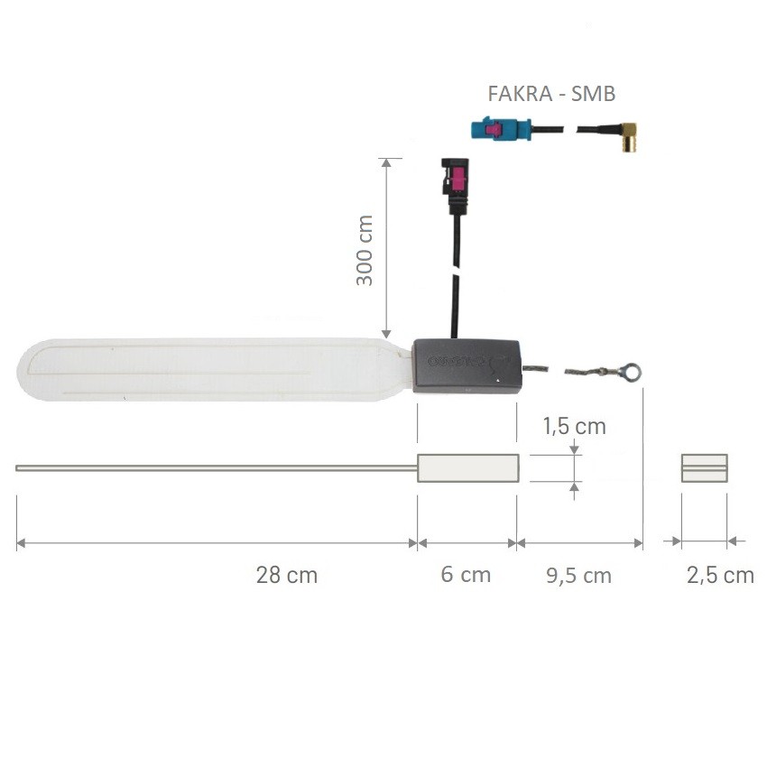 anténa vnútorná aktívna na sklo / DAB / fantómové napájanie 5-12 V / FAKRA konektor
