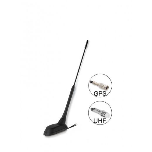 UHF+GPS kombinovaná univerzálna anténa na strechu 60° pre rádiostanice pracujúce v pásme UHF a GPS navigáciu.