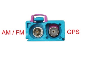 - anténny adaptér pre pripojenie navigácie s dvojitým FAKRA konektorom do automobilov s ISO autoanténou pre autorádio a SMB alebo FAKRA anténou pre GPS navigáciu