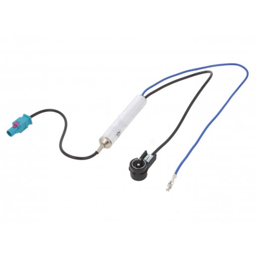 Anténny napájač pre vozidlá s anténou so zosilňovačom napájaným cez anténny vodič (fantómové napájanie). Používa sa pri inštalácii neoriginálneho autorádia.- Anténny konektor od antény v automobilu FAKRA