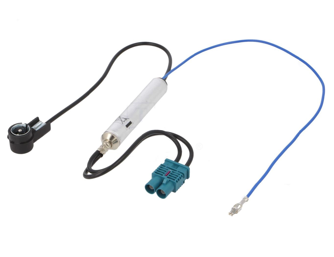 Anténny napájač pre vozidlá s anténou so zosilňovačom napájaným cez anténny vodič (fantómové napájanie). Používa sa pri inštalácii neoriginálneho autorádia.- Anténny konektor od antény v automobilu FAKRA - 2x samostatný konektor