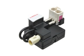 - Výstupný konektor do autorádia: dvojitá FAKRA samica 90° typ B (biela farba).
