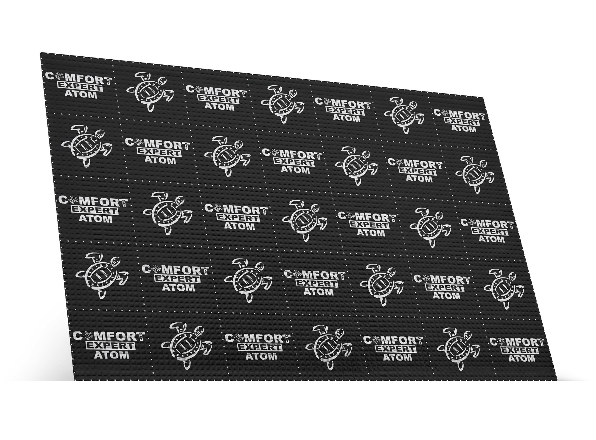 Comfortmat Atom Lite je profesionálny antivibračný materiál s hrúbkou 2,7 mm z najvyššieho radu Expert, ktorý bol vyvinutý špeciálne pre pokročilé inštalácie zvukových systémov vo vozidlách. Vďaka svojej tuhosti je ideálnou voľbou na použitie vo dverách automobilov, keď sa vyžaduje dokonalé spevnenie plechových a plastových dielov, typicky v inštaláciách SQ a SPL. Tento materiál sa však môže použiť aj v aplikáciách odhlučnenia vozidiel, ak sa vyžadujú vynikajúce antivibračné vlastnosti a veľmi malá hrúbka. Atom Lite sa skladá z dvoch typov novo vyvinutých tesniacich materiálov, z ktorých každý plní inú funkciu. Dve tretiny materiálu tvorí vrchná vrstva inovatívneho bitúmenu, ktorá má o 20 % vyššiu tuhosť ako predchádzajúca verzia a umožňuje odfiltrovať vibrácie s najvyššou účinnosťou aj na najviac zaťažených plochách. Druhá vrstva, vyrobená zo špeciálneho ľahkého tmelu, vyniká okrem nízkej hmotnosti aj extrémnou priľnavosťou. Vrchná strana je pokrytá pevnou hliníkovou fóliou so štvorcovou lisovanou štruktúrou pre ešte väčšiu tuhosť materiálu. Výsledkom je vynikajúci antivibračný materiál s koeficientom akustických strát 0,50 jednotiek a vynikajúcimi akustickými vlastnosťami. Atom je prirodzene odolný voči vode, vlhkosti, olejom a extrémnym teplotám, má antikorózne vlastnosti a zachováva si rovnaké vlastnosti v zime aj v lete. Pre optimálny pracovný komfort odporúčame materiál zahriať na 50 stupňov, ale pohodlne sa s ním dá pracovať aj pri skladovaní pri bežnej izbovej teplote.Unikátne technológie materiálu Comfortmat Atom Lite