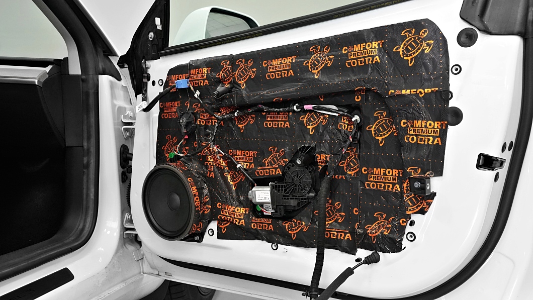 Antivibračný materiál Comfortmat Cobra môžete aplikovať takmer všade, kde je potrebné znížiť vibrácie karosérie. Vzhľadom na hrúbku 2,3 mm a vysoký akustický stratový činiteľ je materiál vhodný najmä pre oblasti so stredným a stredne vysokým zaťažením vibráciami. Vďaka svojej veľmi nízkej hmotnosti je Cobra ideálna najmä pre vonkajší a vnútorný plech dverí a využitie nájde aj ako prvá vrstva pri odhlučnení strechy, blatníkov, torpéda, kapoty ale aj priestoru pod zadnými sedačkami alebo dna kufra. Materiál môžete použiť aj na podlahu, podbehy alebo motorovú prepážku, na tieto oblasti však odporúčame zvoliť antivibračný materiál s hrúbkou 3 alebo 4 mm. V našom článku "ako vybrať antivibračný materiál" sa dozviete všetky ďalšie informácie o antivibračných materiáloch, ich použití, aj správnom výbere. Pokiaľ si nie ste istí, aké materiály a v akom množstve použiť na odhlučnenie vozidiel, využite náš konfigurátor odhlučnenia. Najčastejšie použitie antivibračného materiálu Comfortmat Cobra: