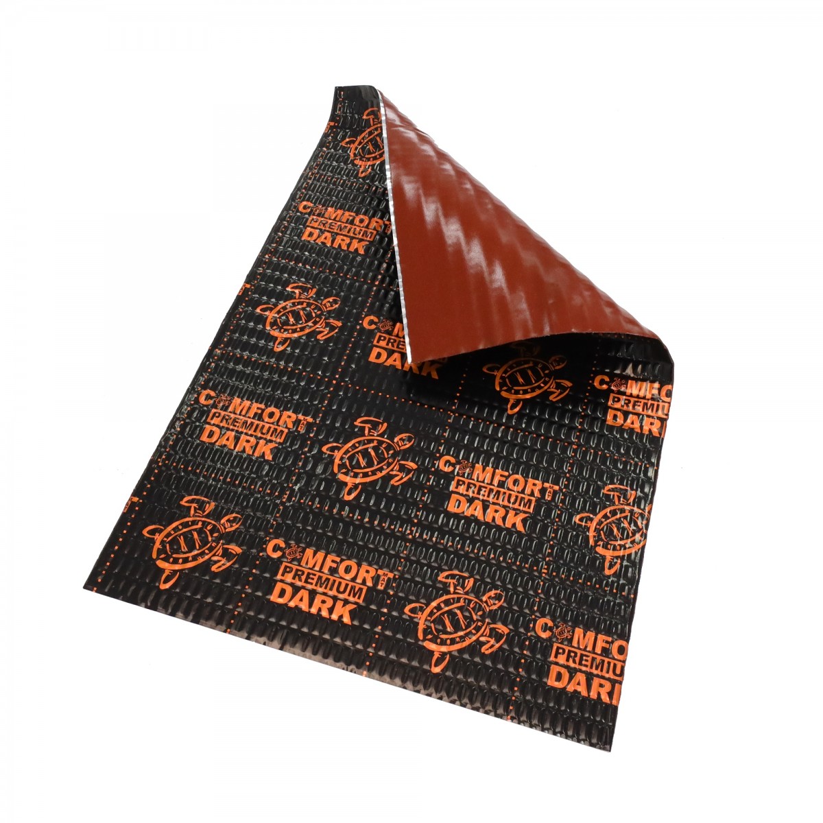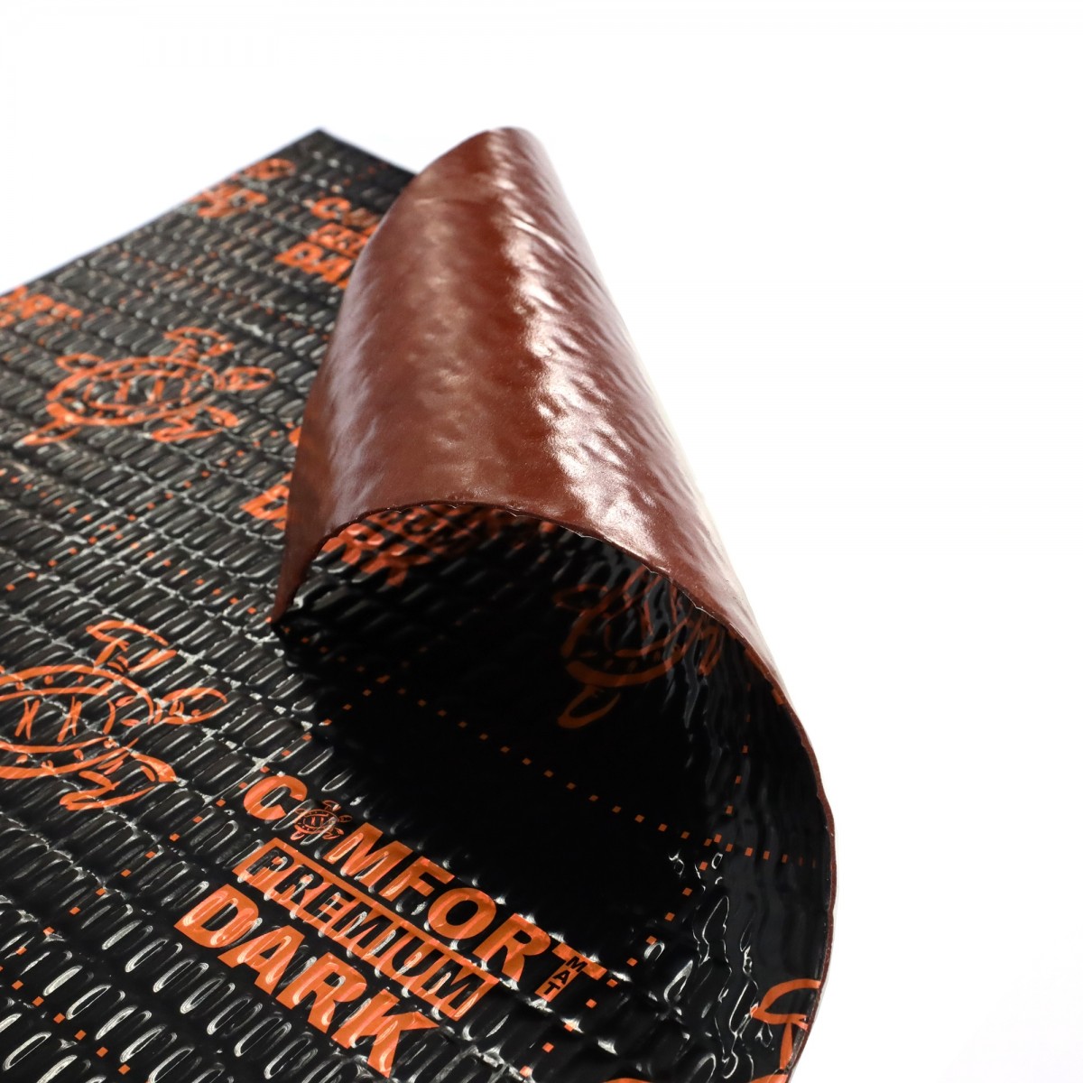 Špičkový antivibračný tlmiaci materiál Comfortmat radu Dark, ktorý patrí medzi prémiové materiály spoločnosti Comfortmat. Skladá sa zo špeciálnej samolepiacej butyl-gumovej vrstvy a hliníkovej fólie s obdĺžnikovou lisovanou štruktúrou. Najnovší modelový rad Dark bol kompletne inovovaný v roku 2019 a prináša úplne jedinečné vlastnosti vďaka vysoko účinnému a ultraľahkému zloženie tmelu D-Formula. Sériová výroba antivibračných materiálov radu Dark bola možno až potom, čo bola vyvinutá nová viacstupňová technológia nízkoteplotného miešania DarkAir. Vďaka tomu sa podarilo dosiahnuť indikátorov, ktoré boli pred touto dobou nedosiahnuteľné. Žiadny iný antivibračný materiál na svete nedisponuje takým pomerom hmotnosti materiálu a jeho účinnosti. V Comfortmate sa teda podarilo vytvoriť unikátny materiál, ktorý si v mnohom odporuje - výrazne sa znížila hmotnosť a zároveň sa zvýšil akustický stratový činiteľ na predtým nedosiahnuteľné hodnoty. Tak ako všetky materiály Comfortmat vyniká aj rad Dark vysokou priľnavosťou na kov, odolnosťou voči vode, vlhkosti a olejom, má antikorózne vlastnosti a vďaka odolnosti proti extrémnym teplotám si ponecháva rovnaké vlastnosti v lete aj zime.