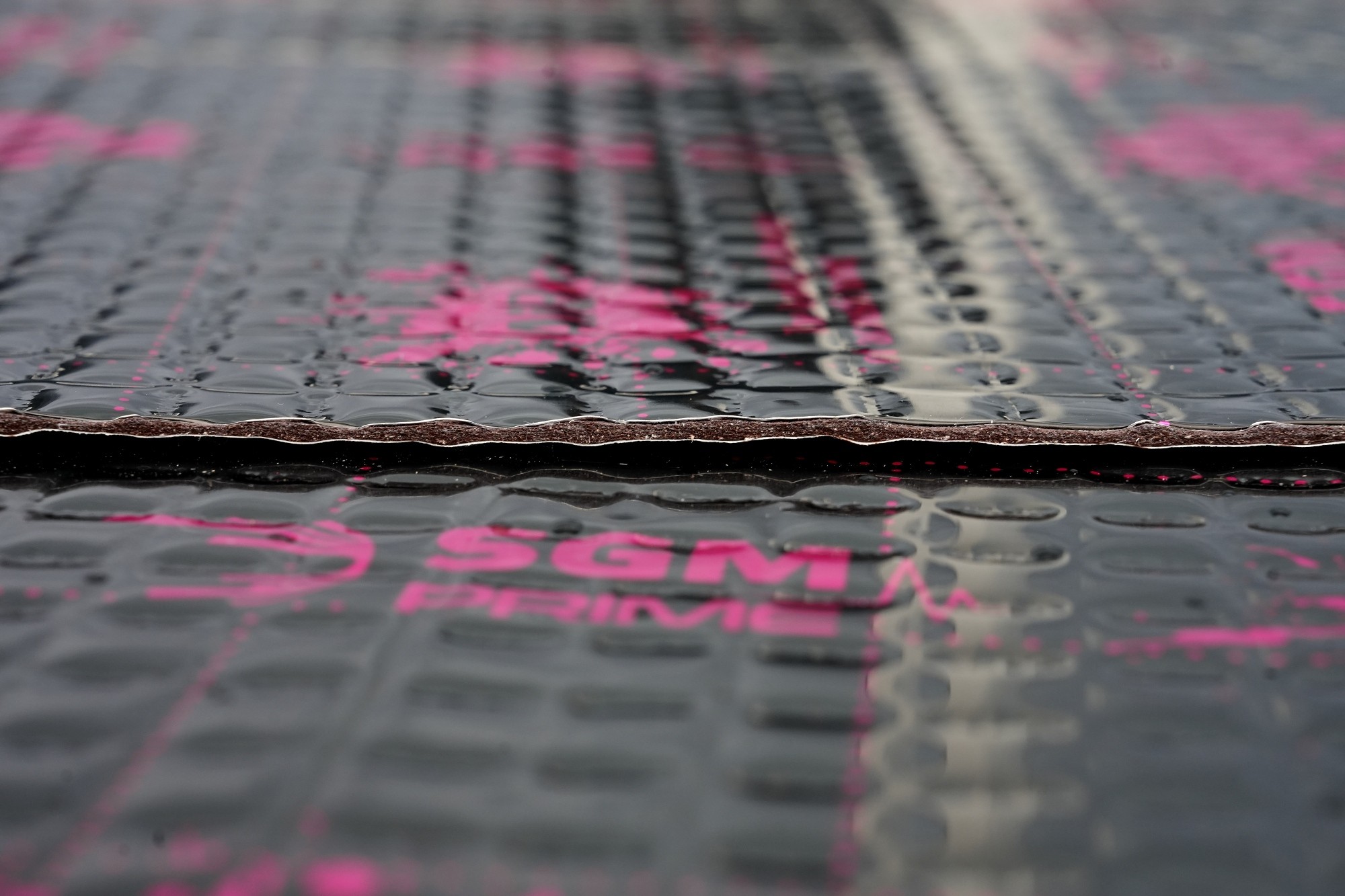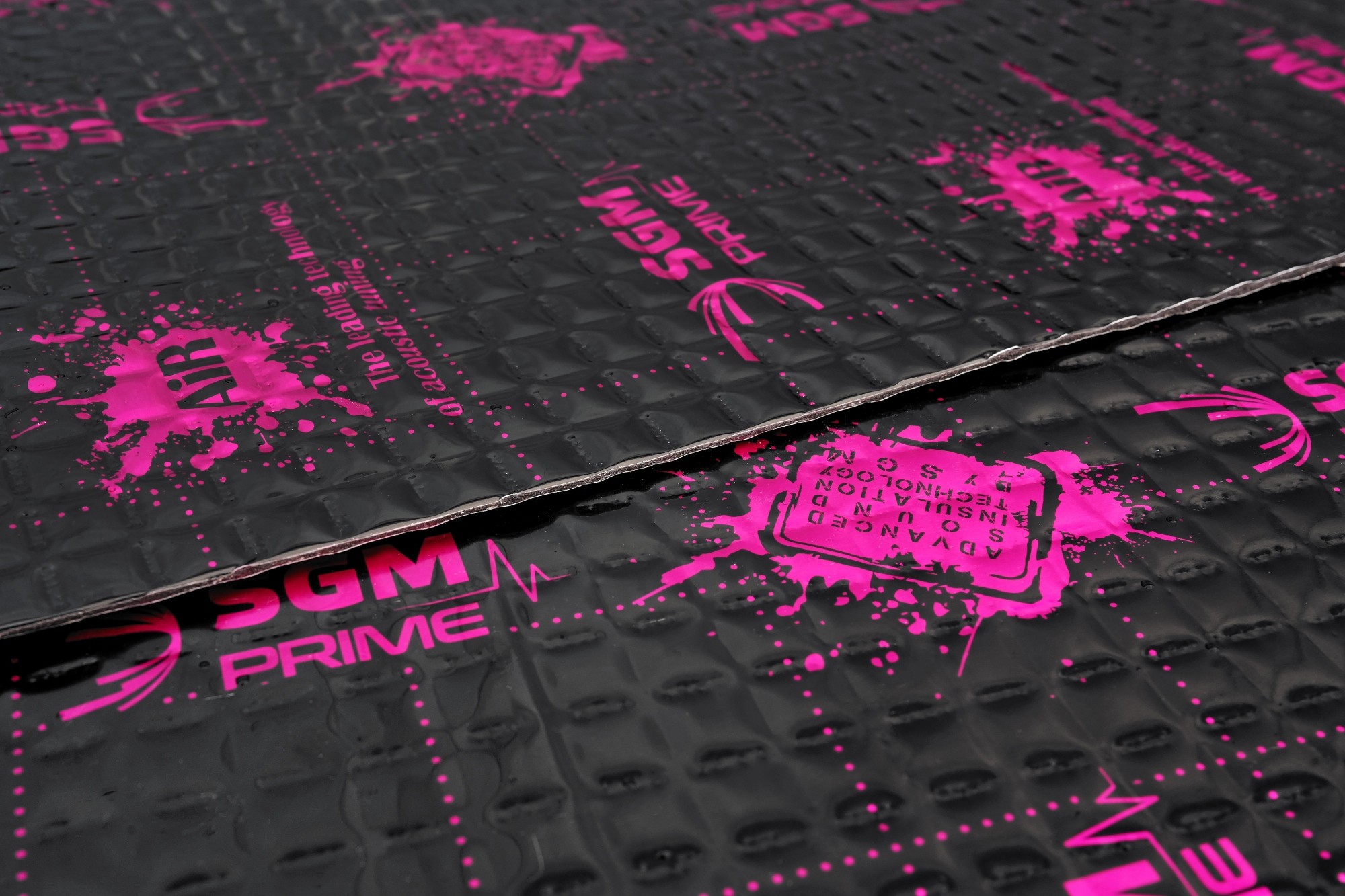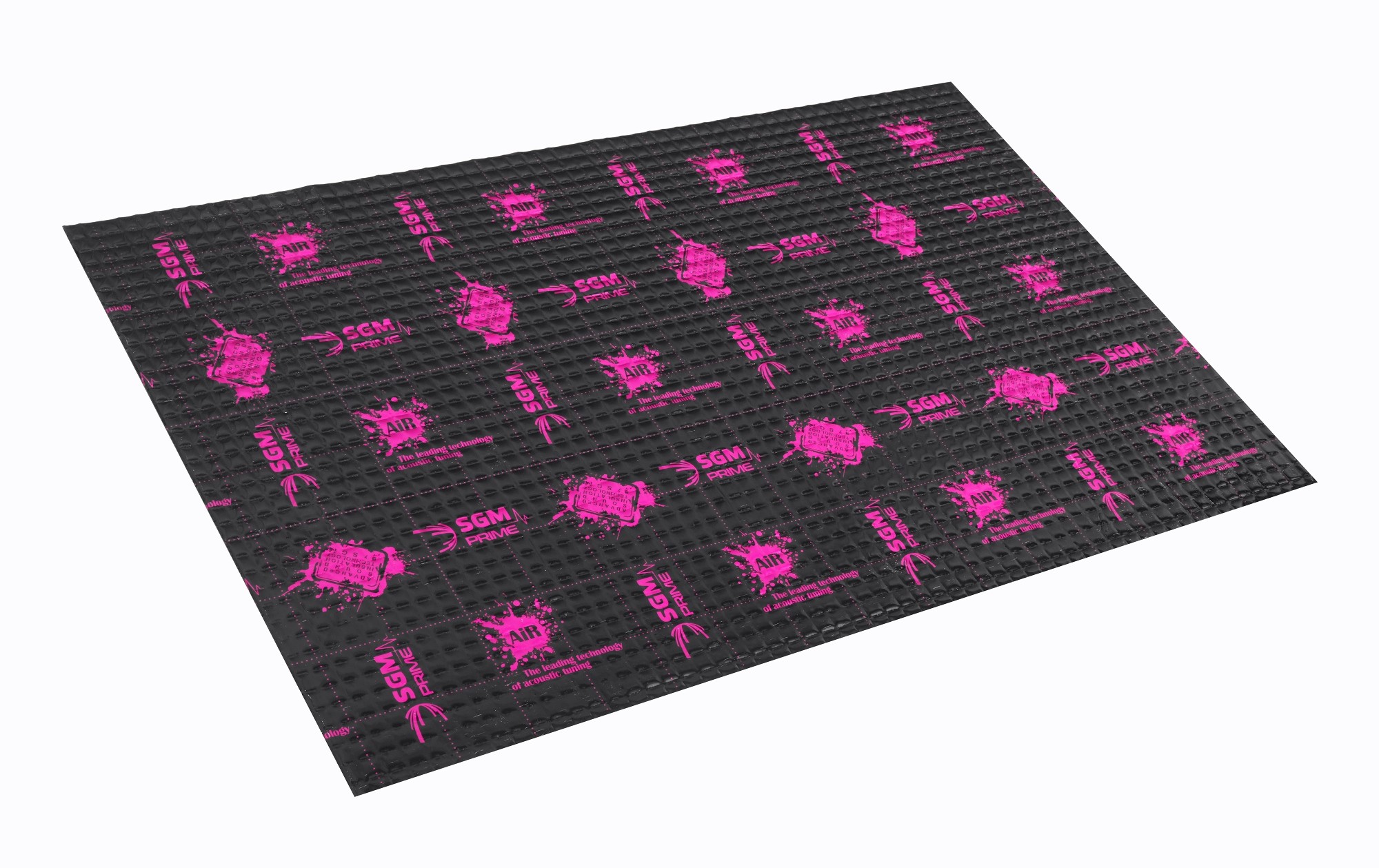 Prvotriedny antivibračný materiál z najvyššieho modelového radu Prime od spoločnosti SGM s extrémne nízkou hmotnosťou. Úplne nový vzorec kaučukovej zmesi tohto unikátneho antivibračného materiálu umožňuje udržiavať vysoký akustický stratový činiteľ (MLF) a stabilitu v širokom teplotnom rozmedzí pri zachovaní veľmi nízkej hmotnosti. Špeciálne zloženie gumovej zmesi zaisťuje vysokú priľnavosť a účinnosť materiálu a viskoplastická štruktúra SGM Air veľmi účinne tlmí mikrovibráciu karosérie. Hliníková fólia s hrúbkou 100 mikrónov zvyšuje pevnosť a kostru materiálu, štvorcová ražba a čierny lak s modernou potlačou vynikne pri inštalácii do každého vozidla. Materiál je samozrejme odolný voči vode a olejom, má antikorózne vlastnosti a zachováva si rovnaké vlastnosti za každého ročného obdobia. Tak ako všetky antivibračné materiály spoločnosti SGM sú aj materiály z radu Prime odolné voči vode, vlhkosti, olejom aj extrémnym teplotám a majú antikorózne vlastnosti.