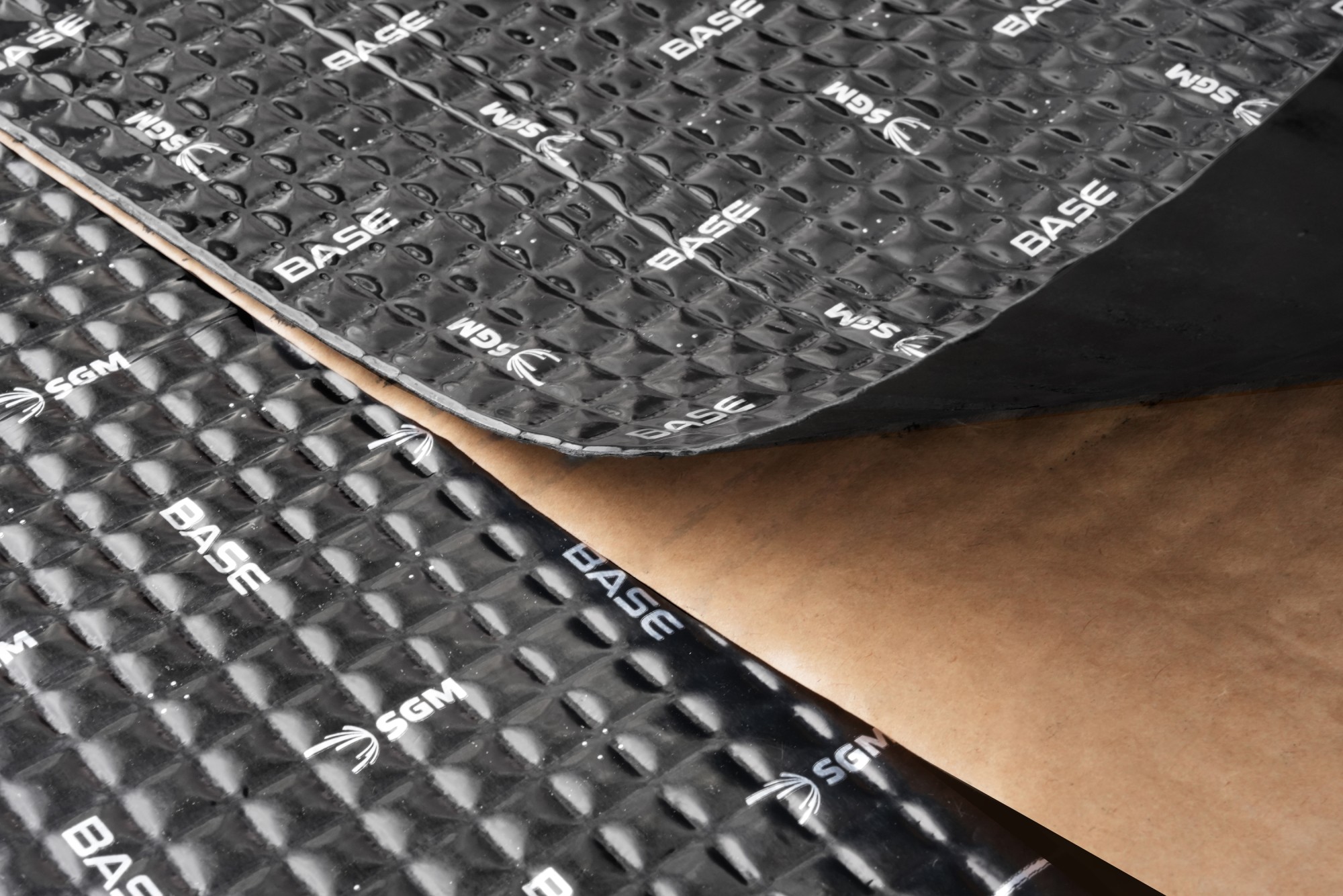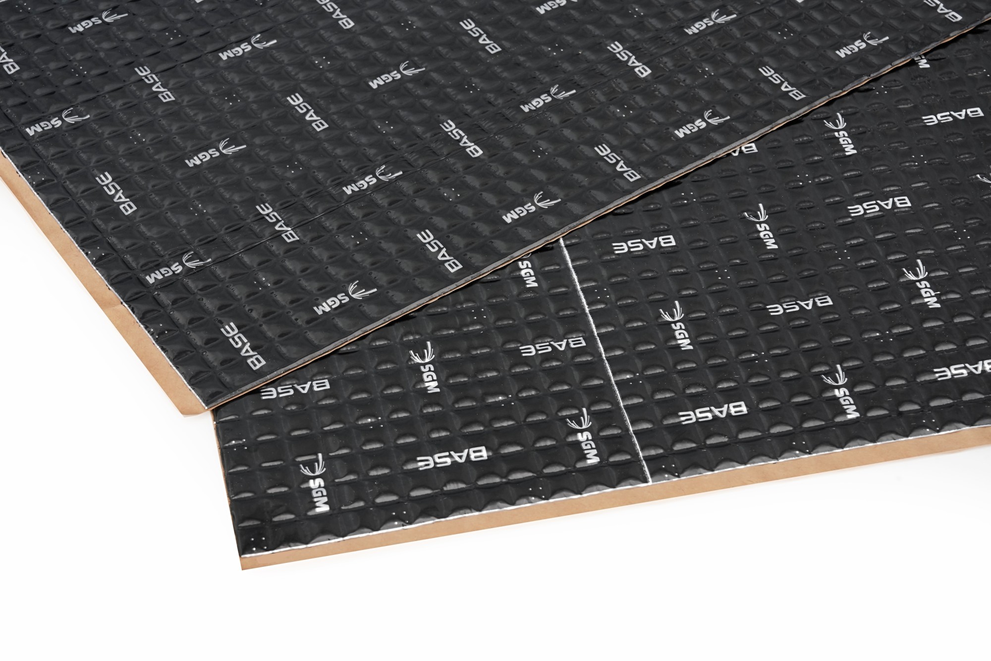 Základný antivibračný materiál SGM pozostávajúci zo samolepiacej polymérovej butylovej gumy a hliníkovej fólie s hrúbkou 60 mikrónov. Na fólii je vyrazené štvorcové logo výrobcu v čiernom laku a materiál je na montážnej strane chránený silikónovou fóliou. Antivibračný materiál zo série Base sa vyznačuje veľmi nízkou cenou, vysokou priľnavosťou ku kovovým povrchom a stabilitou. Faktor akustických strát 0,25 jednotky spolu s hrúbkou 4 mm umožňuje dostatočnú schopnosť základnej zvukovej izolácie a zamedzenia vibrácií. Tak ako všetky antivibračné materiály SGM, aj Base 4 je odolný voči vode, vlhkosti, oleju a má antikorózne vlastnosti.Hlavné vlastnosti antivibračného materiálu SGM Base 4
