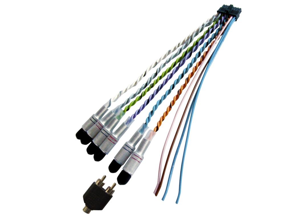 Kabeláž na prepojenie vstupov na Audison AP8.9 bit s RCA konektormi pre vstupy FL, FR, RL, RR a IN1 a IN2 a 3.2 JACK. Toto zapojenie riadi signály pochádzajúce z predzosilňovača pomocných zdrojov (AUX) prostredníctvom vstupov RCA alebo prenosných pomocných zdrojov pomocou adaptéra RCA / jack 3,5 mm.
