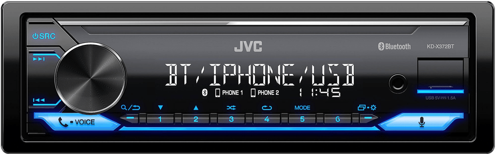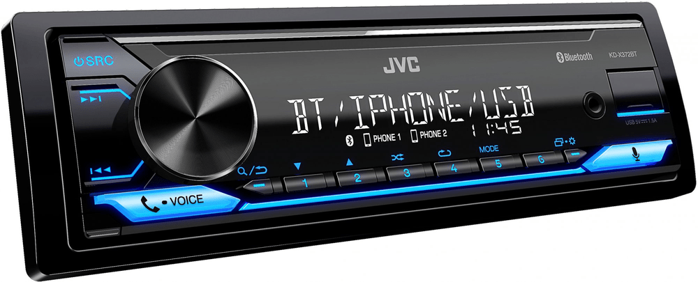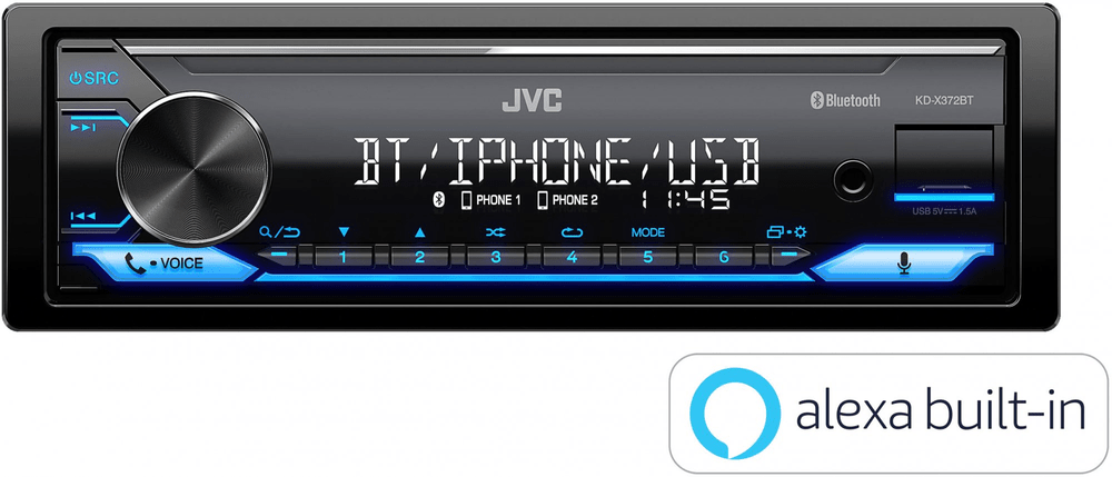 JVC KD-X372BT je prijímač digitálnych médií s integrovanou technológiou Bluetooth pre hands-free volanie a bezdrôtové streamovanie hudby. Dodáva sa s aplikáciami Alexa, Spotify a JVC Remote App. Veľký a ľahko čitateľný LCD displej jasne zobrazí všetky informácie v kombinácii s modrými klávesmi pre jednoduché ovládanie. Autorádio umožňuje ovládanie na volante a výkonný zosilňovač 4 x 50 W zvýši výkon vašich reproduktorov. Ak budete chcieť pridať externý zosilňovač, sú k dispozícii dva 2,5 V výstupy. Kvalita zvuku je zaistená plne digitálnym spracovaním zvuku a časovými korekciami spolu s 13pásmovým grafickým ekvalizérom. Upozorňujeme, že tento model neobsahuje žiadny mechanizmus CD. To však umožňuje znížiť hĺbku produktu na 100 mm, čo oceníte pri vozidlách s menším montážnym priestorom v palubnej doske.