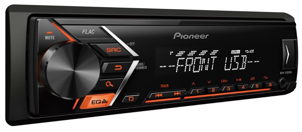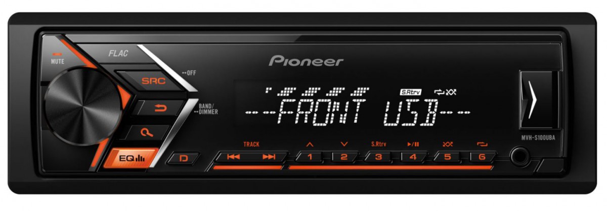 Bezmechanikové autorádio Pioneer MVH-S100UB s oranžovým podsvietením tlačidiel, ktoré za veľmi prijateľnú cenu podporuje formát FLAC a navyše skvele vyzerá. Špeciálne vyvinuté autorádio pre digitálnu hudbu, pre pripojenie s Android smartphonom a ďalšími zariadeniami pomocou predného USB vstupu alebo AUX. Týmto spôsobom môžete počúvať svoje obľúbené skladby a zároveň dobíjať batériu mobilného telefónu (cez USB). Toto rádio ponúka 4x50 W čisté MOSFET sily a kvalitnú reprodukciu zvuku. Vďaka zadnému RCA výstupu môžete inštalovať aktívny subwoofer alebo zosilňovač .