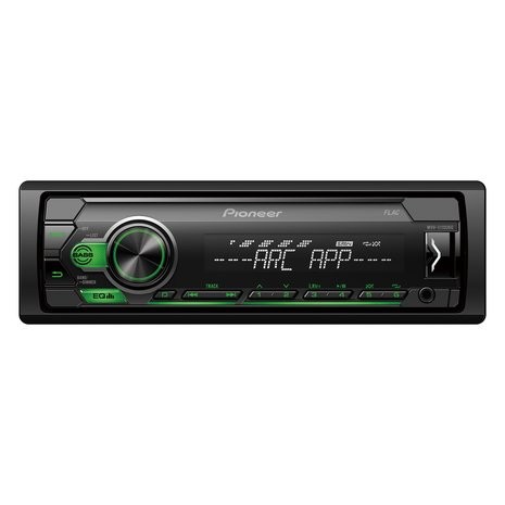 Bezmechanikové autorádio Pioneer MVH-S110UBA so zeleným podsvietením tlačidiel, ktoré za veľmi prijateľnú cenu podporuje formát FLAC a navyše - vyzerá naozaj luxusne. Špeciálne vyvinuté autorádio pre digitálnu hudbu, pre pripojenie s Android smartphonom a ďalšími zariadeniami pomocou predného USB vstupu. Týmto spôsobom môžete počúvať svoje obľúbené skladby a zároveň dobíjať batériu mobilného telefónu (cez USB). Toto rádio ponúka 4 x 50 W čisté MOSFET sily a kvalitnú reprodukciu zvuku. Vďaka zadnému RCA výstupu môžete inštalovať aktívny subwoofer alebo zosilňovač. Autorádio Pioneer môžete navyše ovládať pomocou aplikácie v chytrom telefóne, aplikácia Pioneer ARC. Montáž autorádia je vďaka skrátenému šasi výrazne jednoduhšia. Praktickou funkciou je aj zobrazenie hodín na displeji autorádia.