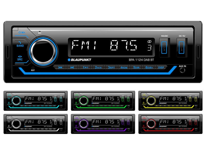 moderné 1DIN autorádio s digitálnym DAB+ tunerom, Bluetooth handsfree/streamingom, dvoma USB portami (jeden aj pre nabíjanie), AUX vstupom a multicolor podsvietením