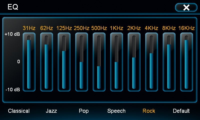 - DSP audio procesor s 10 pásmovým ekvalizérom a priestorovým zvukom 5.1