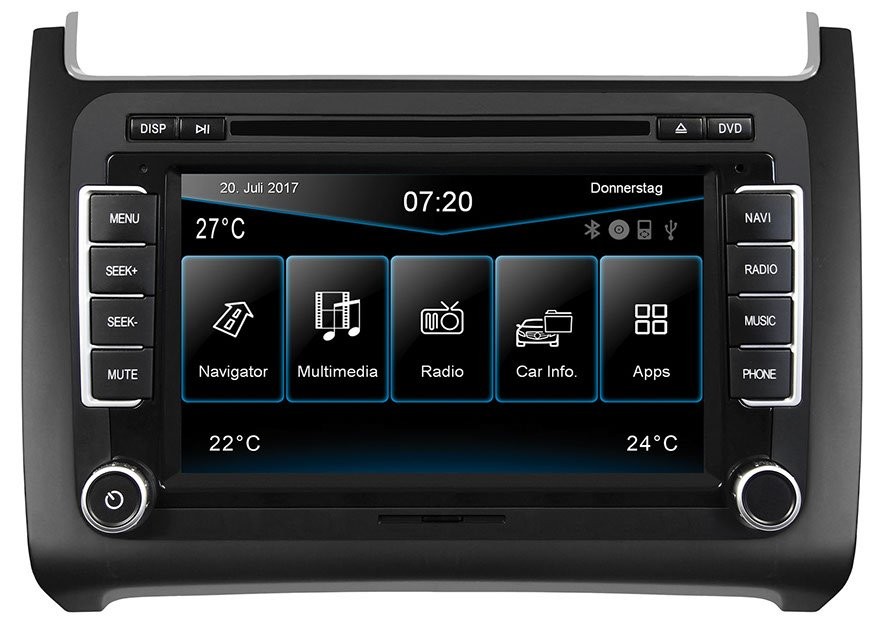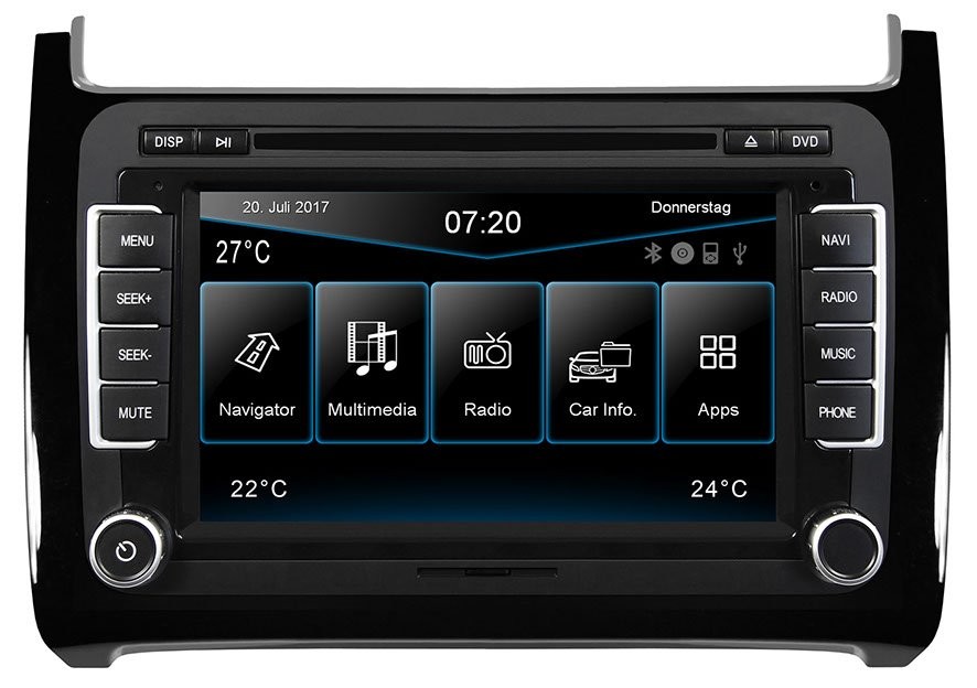 2DIN autorádio s 7" dotykovým displejom pre vozy VW Polo 6C (4 / 14->) - bez rámčeka
