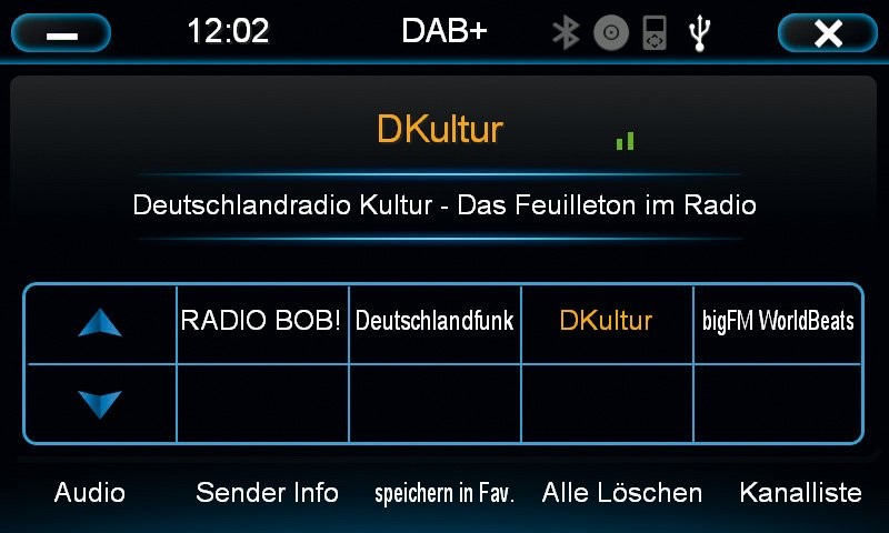 - Podpora externého televízneho alebo rozhlasového prijímača (DVB-T, DAB atď.)