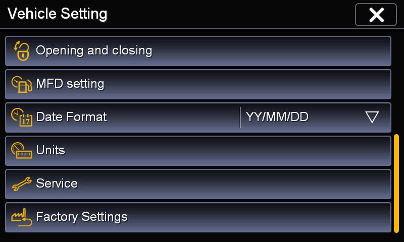 - Nastavenie vozidla, ako je osvetlenie, klimatický profil, centrálne zamykanie, stierače