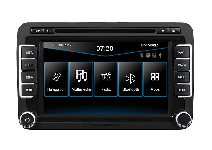 2DIN autorádio s 7" dotykovým displejom pre vozy VW Caddy III 2K (6 / 15->), Beetle Facelift Typ 5C (2 / 16->), Golf Cabrio VI (15-> 16), Touran II Typ 5T (5 / 15->), T6 (7 / 15->), Sharan II (5 / 15->)
