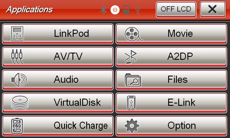 - Integrovaný DVD prehrávač, podpora DVD, DVD-R / RW, DVD + R / RW, VCD, CD, CD-Text, CD-R / RW, MP3